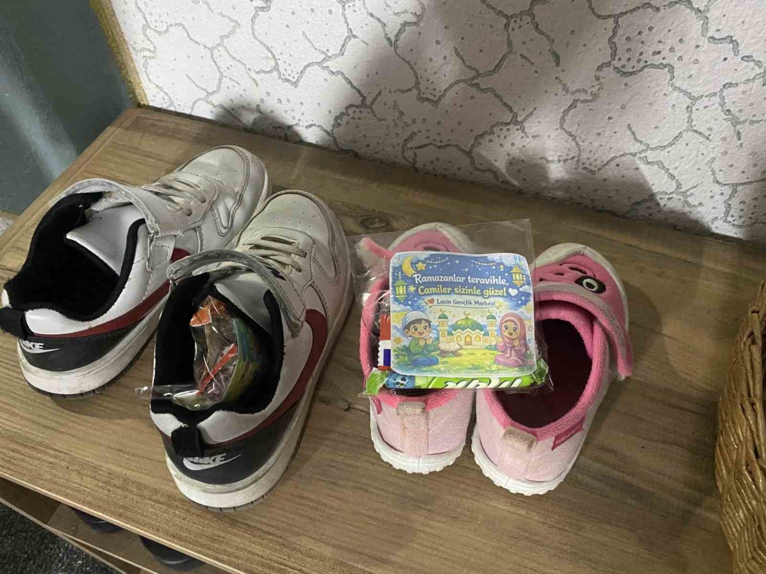 Teravih sonrası ayakkabılardan çıkan hediyeler çocukları sevindirdi