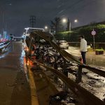 Kocaeli’de ters yönden yola giren otomobil refüjdeki bariyerleri biçti, kazada sürücü yaralanırken araç hurdaya döndü.