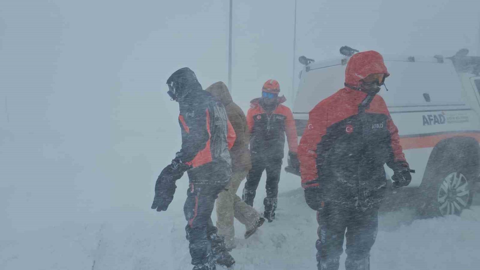 Kayseri’de Erciyes yolunda tipi nedeniyle mahsur kalan 2 kişi AFAD ekipleri tarafından kurtarıldı.
