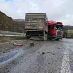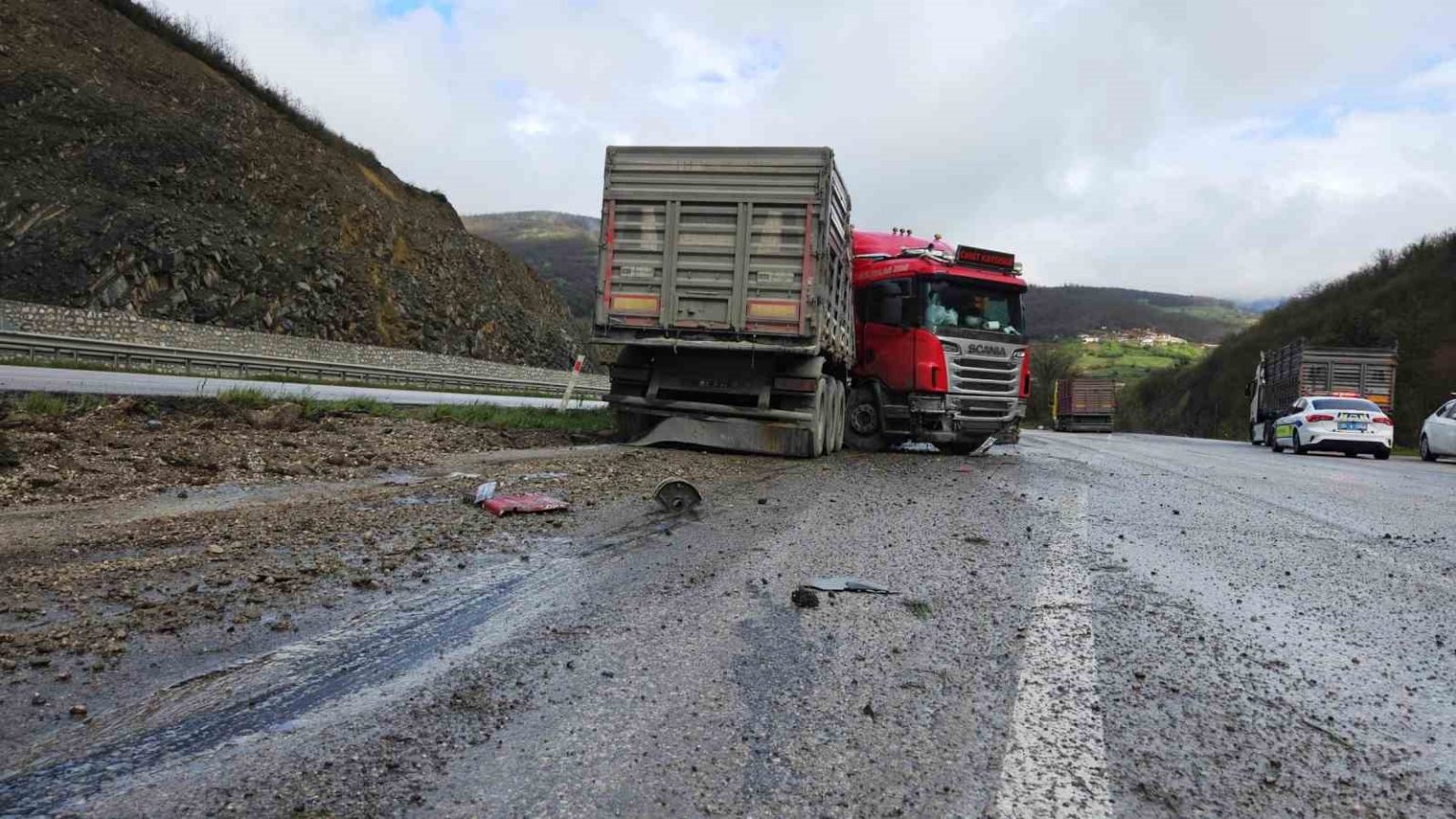 Samsun’un Kavak ilçesinde yağışın etkisiyle kayganlaşan yolda kontrolden çıkan tırın makaslaması sonucu meydana gelen kazada sürücü yaralandı.