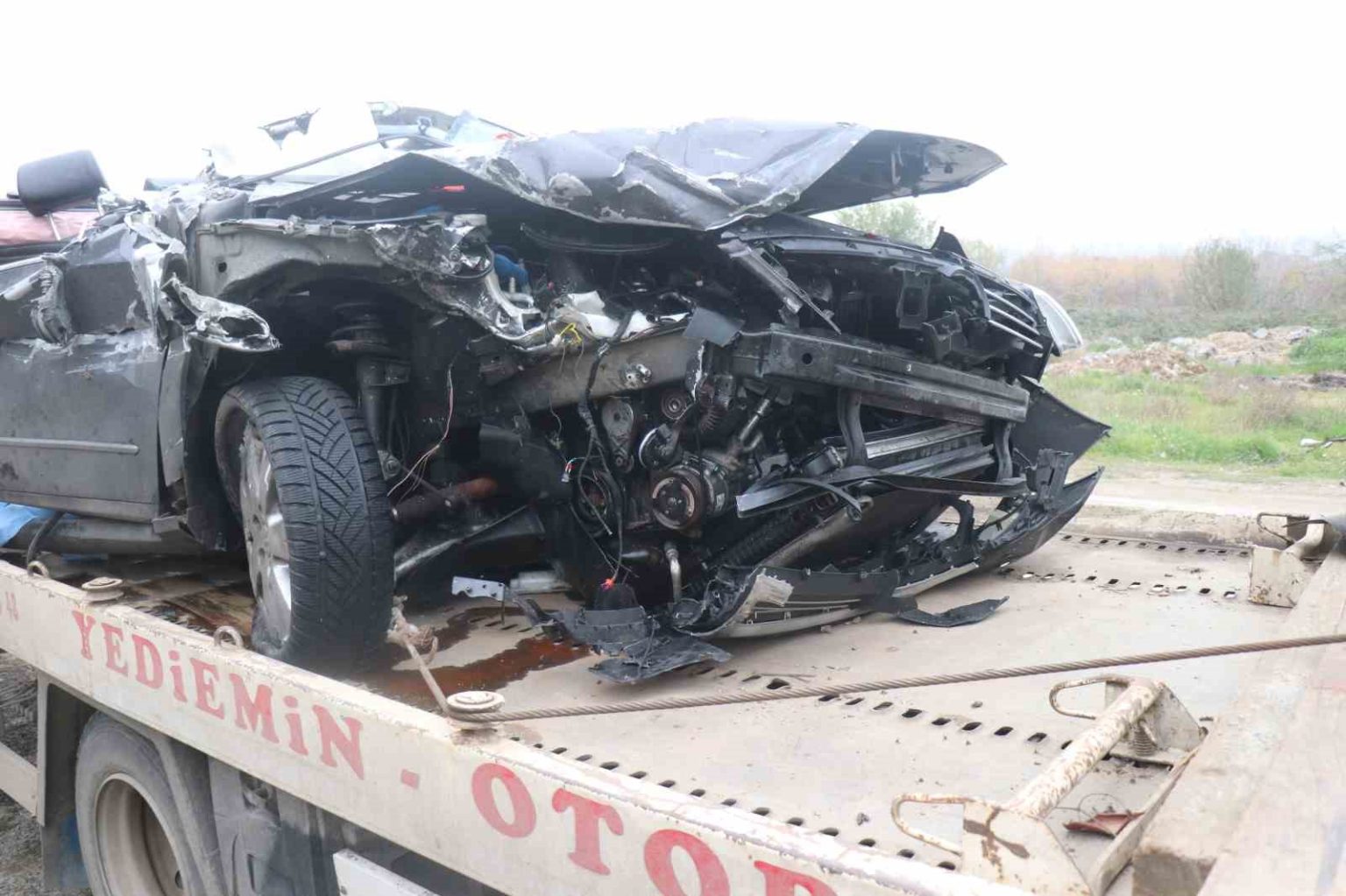 Tıra çarpan araç kağıt gibi ezildi: 1 ölü, 1 yaralı