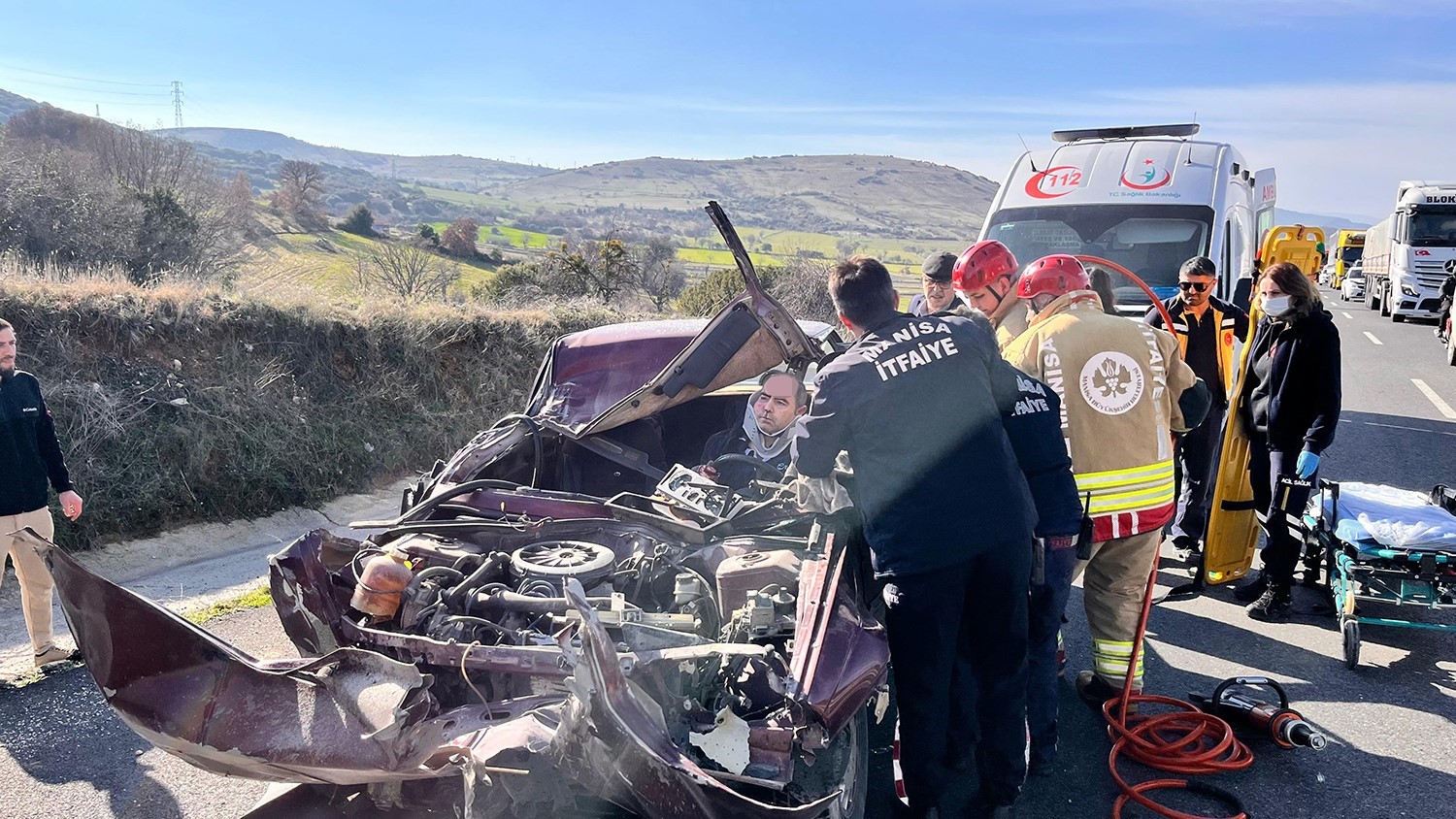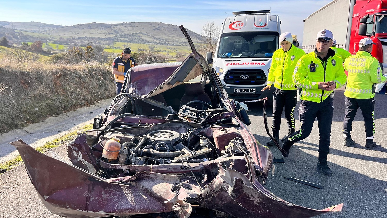 Kaza saat, 15.45 sıralarında İzmir-Ankara D300 karayolu Kavacık Rampaları yakınlarında meydana geldi. Edinilen bilgiye göre, İzmir’den Uşak istikametine gitmekte olan Adem K. (42) idaresindeki otomobil, sürücüsünün direksiyon hakimiyetini kaybetmesi sonucu aynı yönde seyir halindeki İbrahim Can M. (26) idaresindeki 06 EHD 781 plakalı tıra arkadan çarptı. Çarpışmanın etkisiyle tıra takılan otomobil yaklaşık 150 metre sürüklenerek durabildi. Otomobil içerisinde sıkışan sürücü, itfaiye ekiplerinin çalışması sonucu kurtarıldı. Kazayı gören vatandaşların 112 Acil Çağrı Merkezi’ne bildirmeleri üzerine olay yerine itfaiye, ambulans, jandarma ve polis ekipleri sevk edildi. Yaralı otomobil sürücüsü olay yerinde yapılan ilk müdahalesinin ardından Kula Devlet Hastanesi’ne kaldırıldı. Yaralı sürücünün hayati tehlikesinin bulunmadığı öğrenildi.