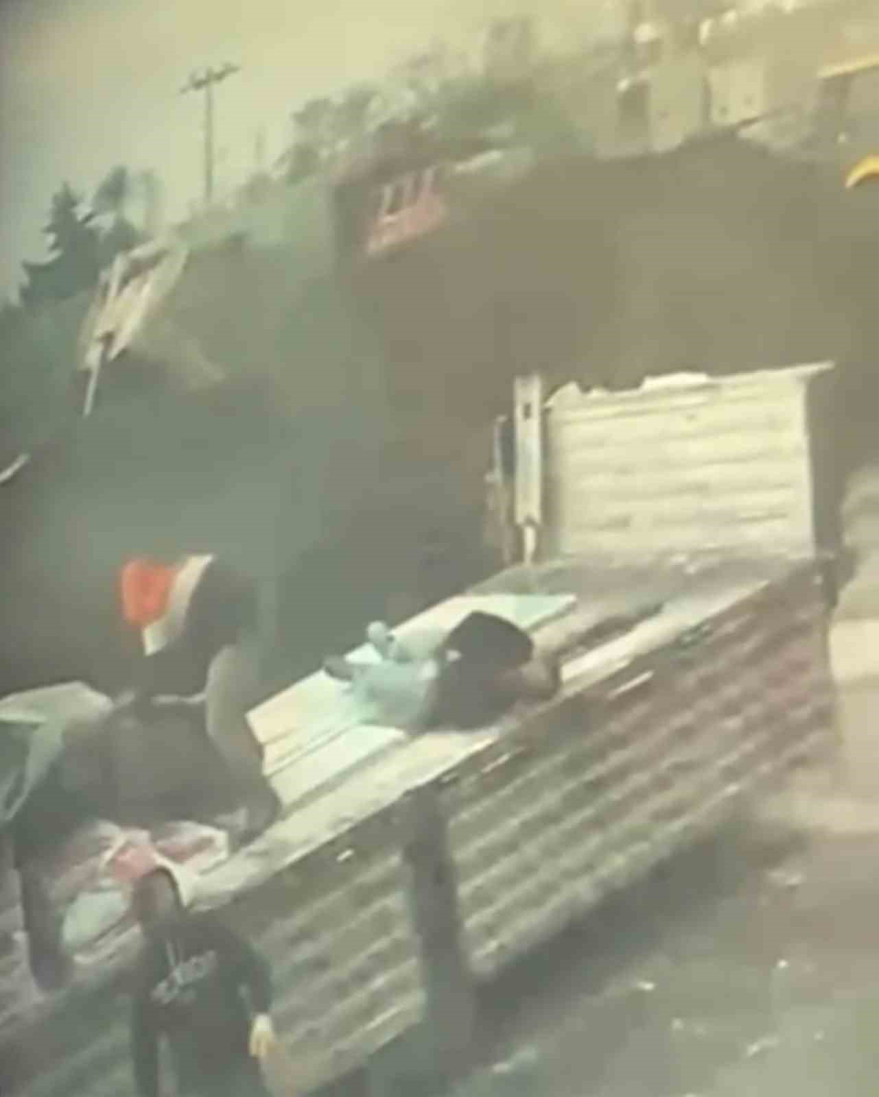 Öte yandan yıldırımın düştüğü anlar, iş yerinin güvenlik kamerasınca saniye saniye kaydedildi.