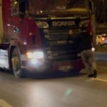 Kayseri’nin Kocasinan ilçesinde alkollü olduğu iddia edilen bir şahıs, ağaç yüklü bir tırın önüne geçerek gitmesine izin vermedi. Trafiği kilitleyen şahsı yakınları güçlükle kaldırıma çekti.