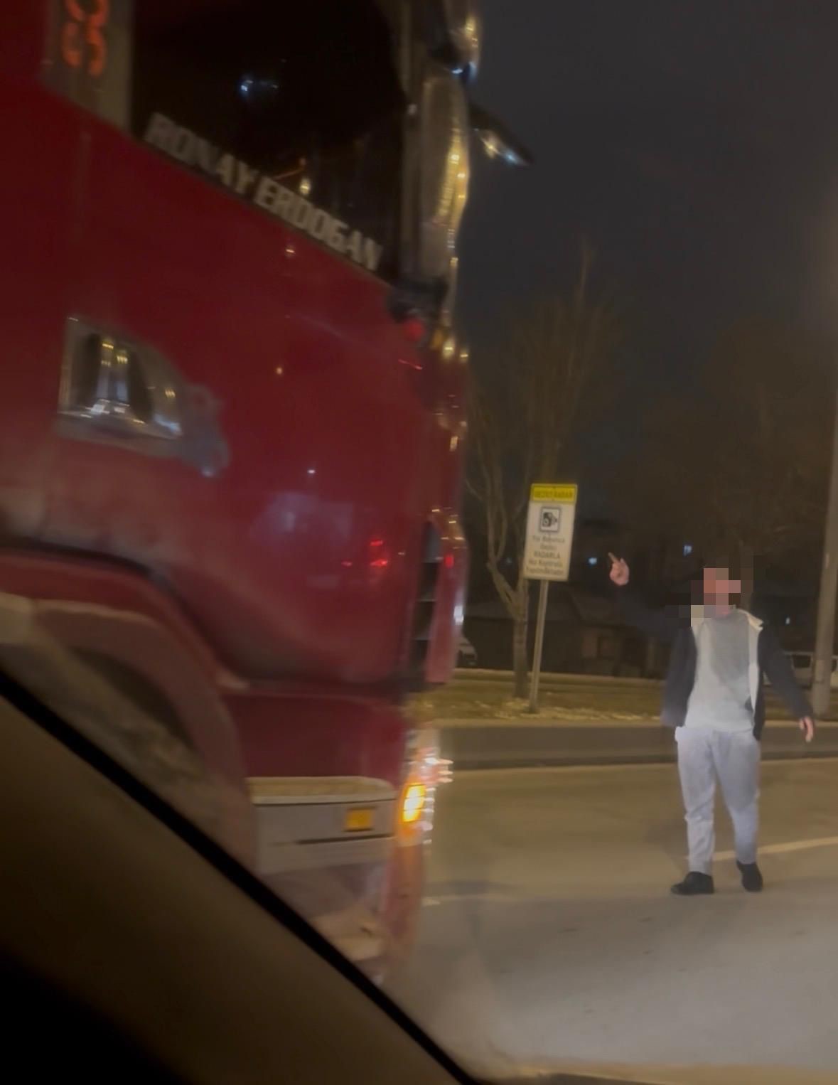 Edinilen bilgiye göre, Argıncık Mahallesi Kocasinan Bulvarı üzerinde meydana gelen olayda, alkollü olduğu iddia edilen M.A.D. seyir halindeki ağaç yüklü tırın önüne atladı. Tırın gitmesine izin vermeyen M.A.D. trafiği kısa süreli kilitlerken, tır şoförü araçtan inerek M.A.D.’yi yolun kenarına çekmeye çalıştı. İkna olmayan M.A.D. tekrardan tırın önüne geçerek eylemini sürdürdü. Daha sonra olay yerine gelen M.A.D.’nin yakınları güçlükle şahsı kaldırıma çekti. Kısa süreli kilitlenen trafik, M.A.D.’nin çekilmesinin ardından açılmıştı.