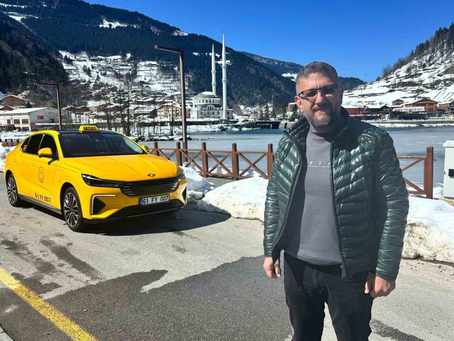 Trabzon’un Çaykara ilçesinde uzun yıllardır taksicilik yapan Mehmet Sabri Kara, Türkiye’nin yerli ve elektrikli otomobili Togg T10F modelini sarıya kaplatıp taksiye dönüştürerek, Karadeniz’in zorlu yollarında elektrikli taksi dönemini başlatan ilk isimlerden biri oldu.