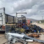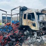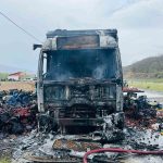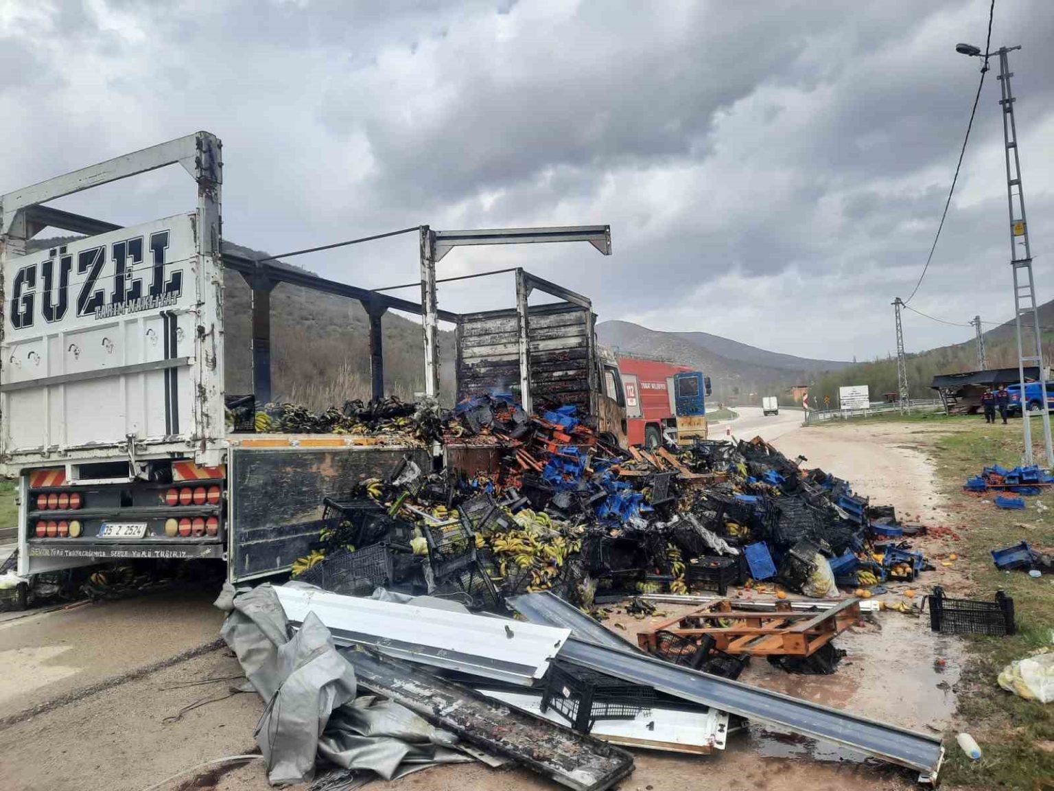 Tokat’ta çilek yüklü kamyon yandı