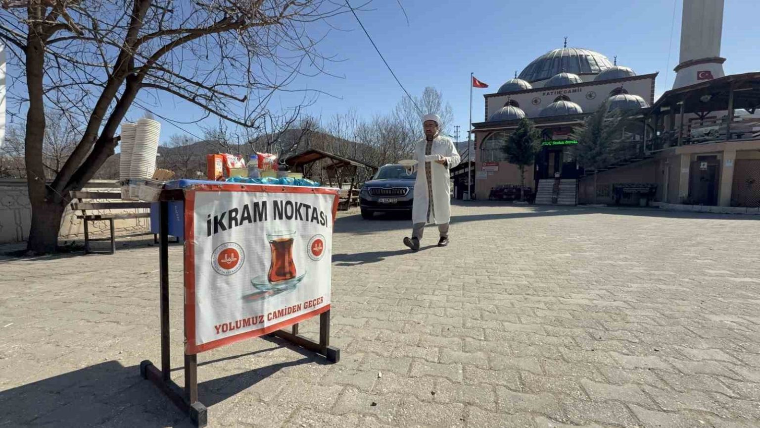 Tokat’ta D-100 kara yolu üzerindeki bir camide kurulan ikram noktası, iftara yetişemeyen sürücülere ücretsiz ikram sunarak hem oruçlarını açmalarına hem de trafikte iftar telaşının oluşturabileceği risklerin önüne geçilmesine katkı sağlıyor.