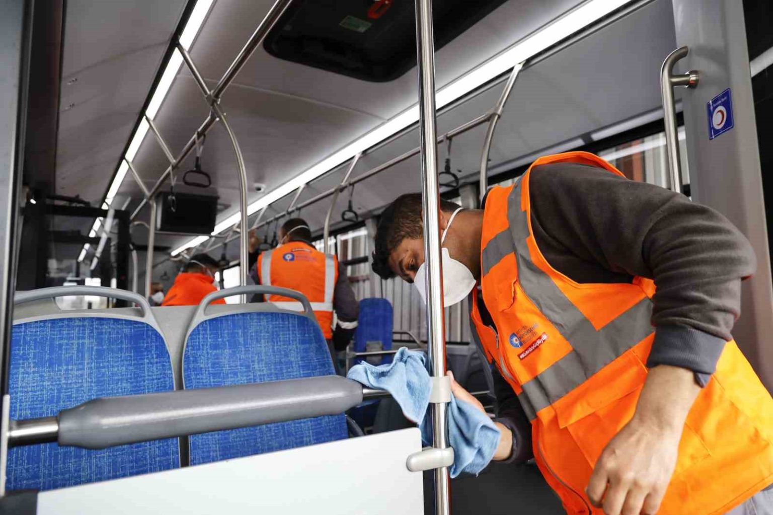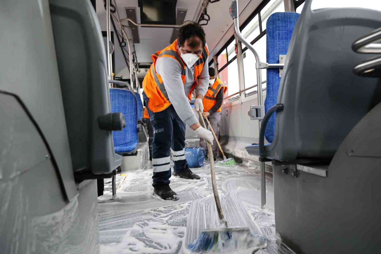Toplu ulaşım araçları temizlenerek sefere hazırlanıyor