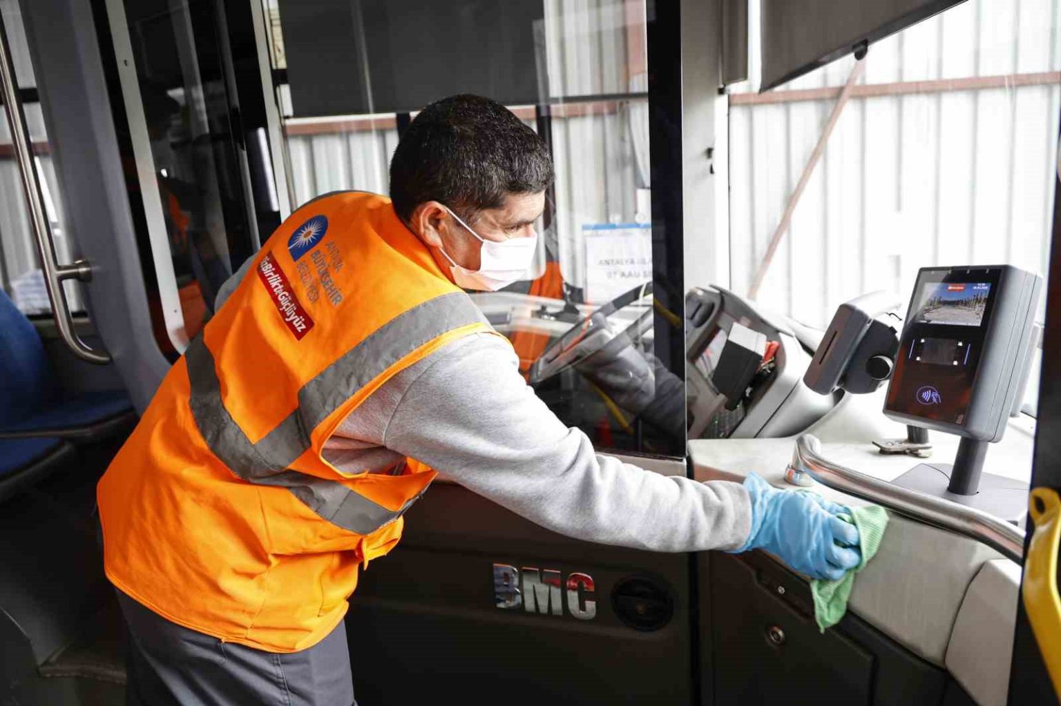 Antalya Büyükşehir Belediyesi, Antalyalılara daha iyi, temiz ve hijyenik bir ulaşım hizmeti sunmak için toplu ulaşım araçlarını titizlikle temizleyerek, seferlere hazırlıyor.