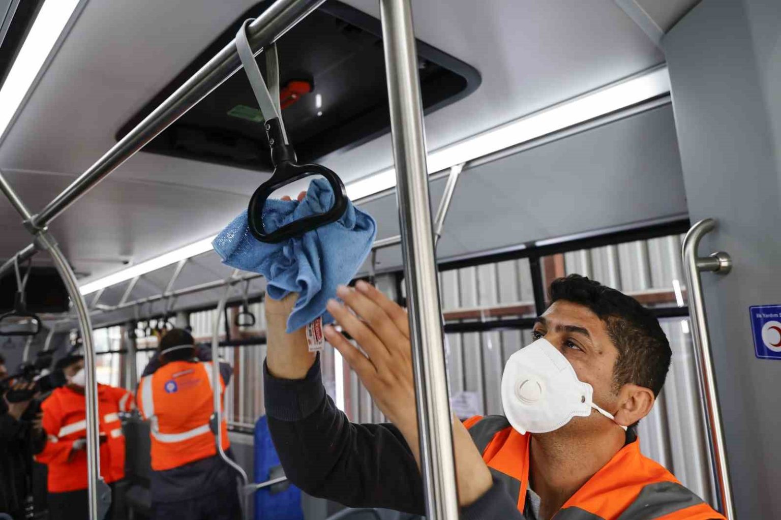 Ulaşım A.Ş. Operasyon Birimler Sorumlusu Ramazan Delioğlu, toplu taşıma araçlarının her gün detaylı şekilde temizlendiğini belirterek, “Seferini tamamlayan araçlarımızın temizliği her gün titizlikle gerçekleştiriliyor. Yolcularımızın temas ettiği tüm yüzeyler düzenli olarak dezenfekte ediliyor. Koltuklar, tutacaklar ve zeminler özel temizlik ürünleriyle ayrıntılı biçimde temizleniyor. Hijyen standartlarımızı yüksek tutuyoruz. Çünkü halkımızın sağlığı bizim için büyük önem taşıyor. Toplu taşıma ortak kullanım alanıdır. Biz üzerimize düşeni yaparken vatandaşlarımızdan da bu temizliğin korunması konusunda duyarlılık bekliyoruz” dedi.