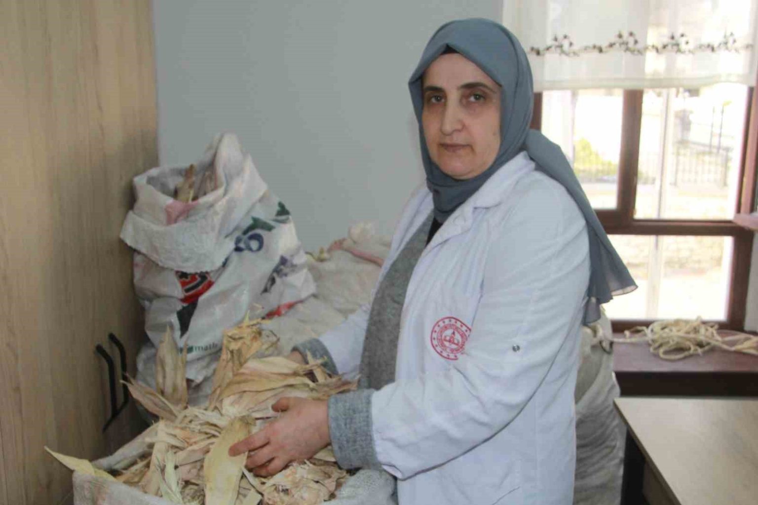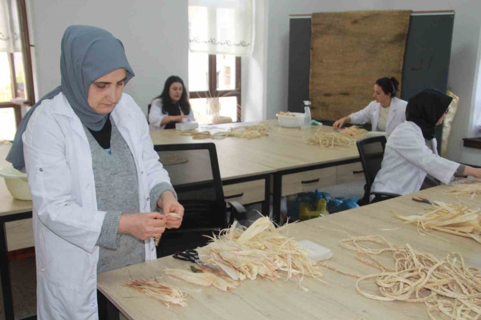 Bölgede yetiştirilen ve genellikle hayvan yemi olarak değerlendirilen mısır kabukları, Ordu Olgunlaşma Enstitüsü Bitkisel Örücülük Atölyesinde usta öğreticiler tarafından titizlikle işlenerek ev ve yaşam alanlarına yönelik fonksiyonel ürünlere dönüştürülüyor. Hasat sonrası üreticilerden temin edilen mısır kabukları, enstitü bünyesinde yürütülen uzun ve zahmetli bir hazırlık sürecinin ardından üretime alınıyor.