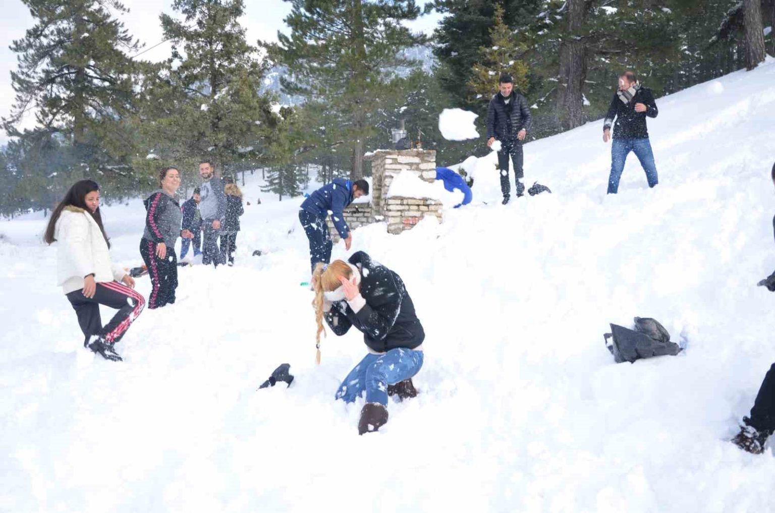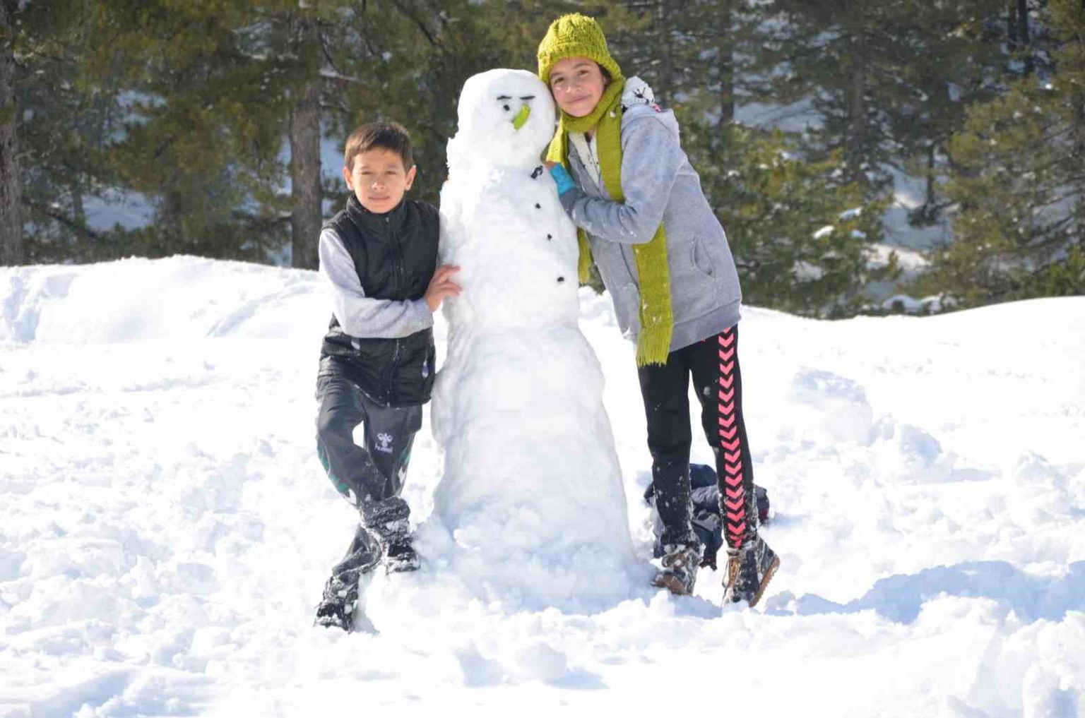 Manavgat’tan araçlarıyla yaklaşık bir saatlik yolculuk yapan vatandaşlar, Torosların zirvesinde kış manzarasıyla karşılaştı. Aileler çocuklarıyla birlikte karda oynadı, gençler kızak ve poşetlerle kaydı, bazı ziyaretçiler ise kardan adam yaparak hatıra fotoğrafları çekti. Zirvede mangal yakıp semaverle çay demleyenler, Alacabel’i adeta açık hava piknik alanına çevirdi.
