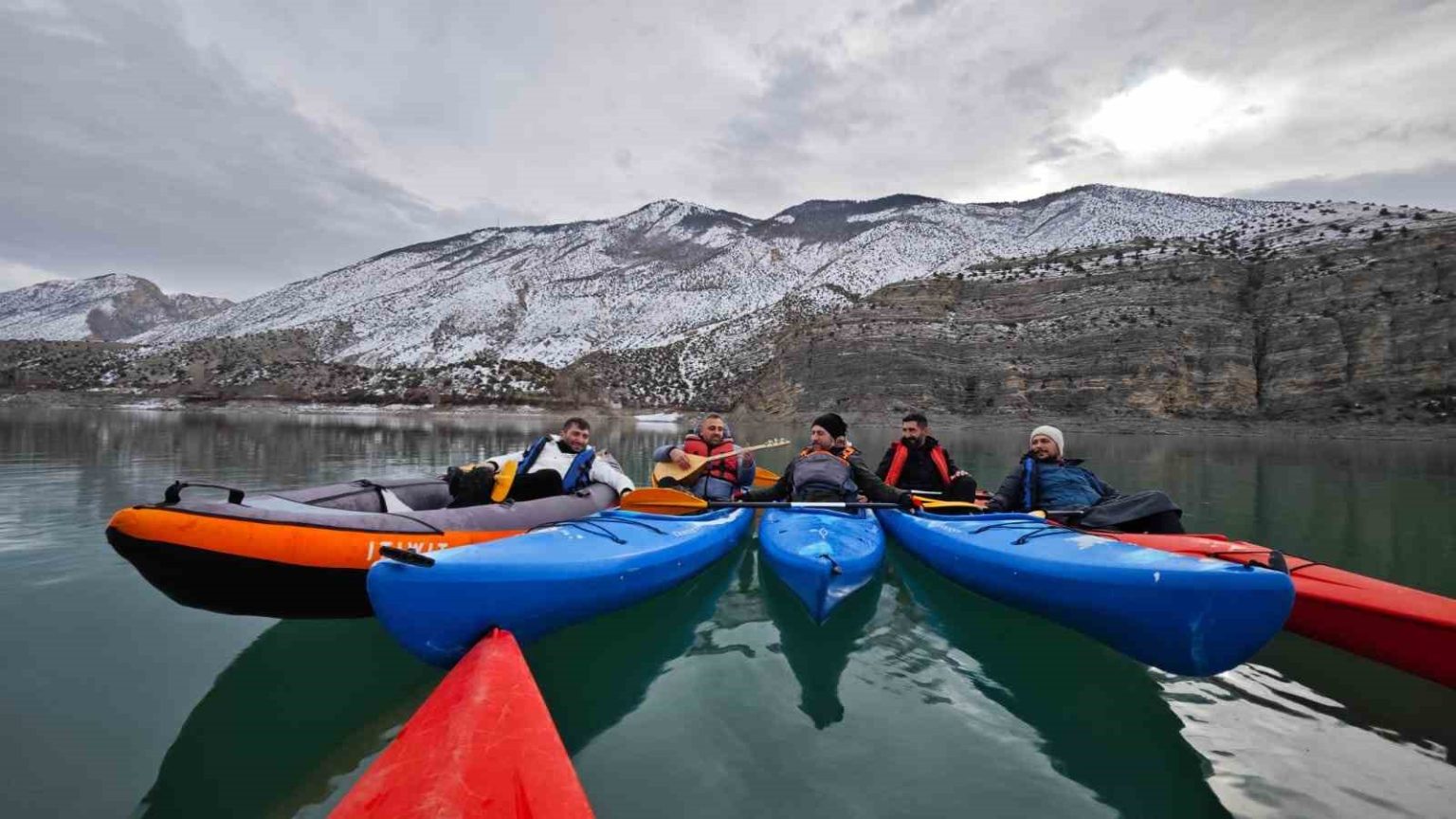 Tortum Gölü'nde Kano üzerinde sazlı sözlü eğlence