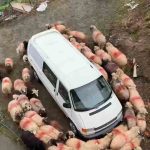 Trabzon’un Araklı ilçesinde Faik Hancı’ya ait küçükbaş hayvanlar, sabah yemleme için ağıldan çıkarıldı. Normalde otlama alanına yönelmeleri gereken küçükbaş hayvanlar, bir anda park halindeki minibüsü çevreledi. Aynı hızda ve neredeyse kusursuz bir daire şeklinde hareket etmeye başlayan küçükbaş hayvanlar, ortaya ilginç görüntüler çıkardı. Sürünün dakikalarca aracın çevresinde halka oluşturup döndüğü anlar ise cep telefonu kamerasına yansıdı.