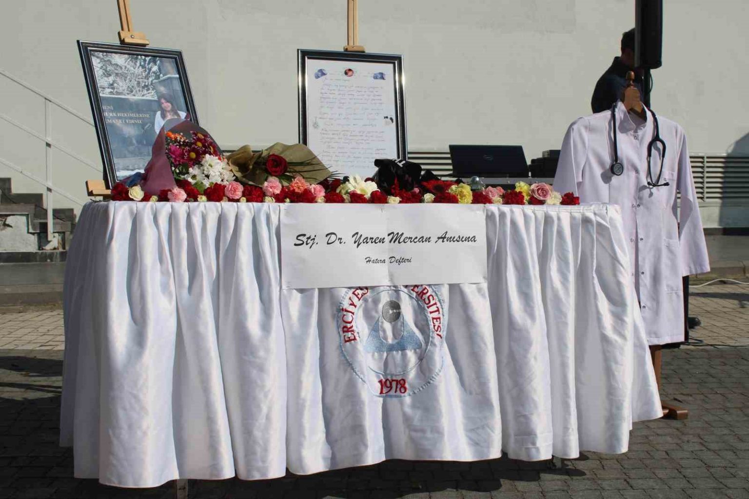 Kuranı Kerim’in okunarak dua edildiği anma programına Tıp Fakültesi Dekanı Prof. Dr. İsmail Dursun, Yaren Mercan’ın ailesi, hocaları ve arkadaşları katıldı. Yaren Mercan için Hatıra Defteri’nin de konulduğu törende duygusal anlar yaşandı.
