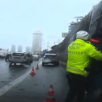 Küçükçekmece’de aracıyla seyir halindeyken boğazına şeker kaçan sürücü, polisin Heimlich manevrası ile hayata döndü. O anlar sürücünün araç kamerasına yansıdı.