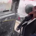 Adana’da trafikte yol verme meselesi yüzünden çıkan tartışmada motosiklet sürücüsü, kaskıyla servis aracının camını kırdı. O anlar cep telefonu kamerasına yansıdı.