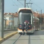 Eskişehir’de patenli 2 çocuğun tramvayın arkasına tutunarak yaptığı tehlikeli yolculuk kameraya yansıdı.