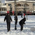 Millet Bahçesi’nde Türk arkadaşlarıyla bir araya gelen öğrenciler, kar topu oynayıp hatıra fotoğrafı çektirerek keyifli vakit geçirdi.