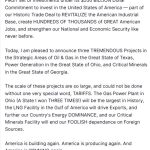 Bu büyük ölçekli projeleri uyguladığı gümrük tarifelerinin mümkün kıldığını savunan Trump, “Seçimlerde 3 kez kazandığım bir eyalet olan Ohio’daki gaz santrali tarihin en büyüğü olacak, Amerika Körfezi’ndeki LNG (sıvılaştırılmış doğalgaz) tesisi ihracatı artıracak ve ülkemizin enerji hakimiyetini daha da ileriye taşıyacak ve kritik mineraller tesisimiz yabancı kaynaklara olan aptalca bağımlılığımıza son verecek” dedi. ABD’nin yeniden üretim yapmaya ve kazanmaya başlayan bir ülke konumuna geldiğine dikkat çeken Trump, “Bu, ABD ve Japonya için çok heyecan verici ve tarihi bir dönem. Herkese tebrikler” açıklamasında bulundu.
