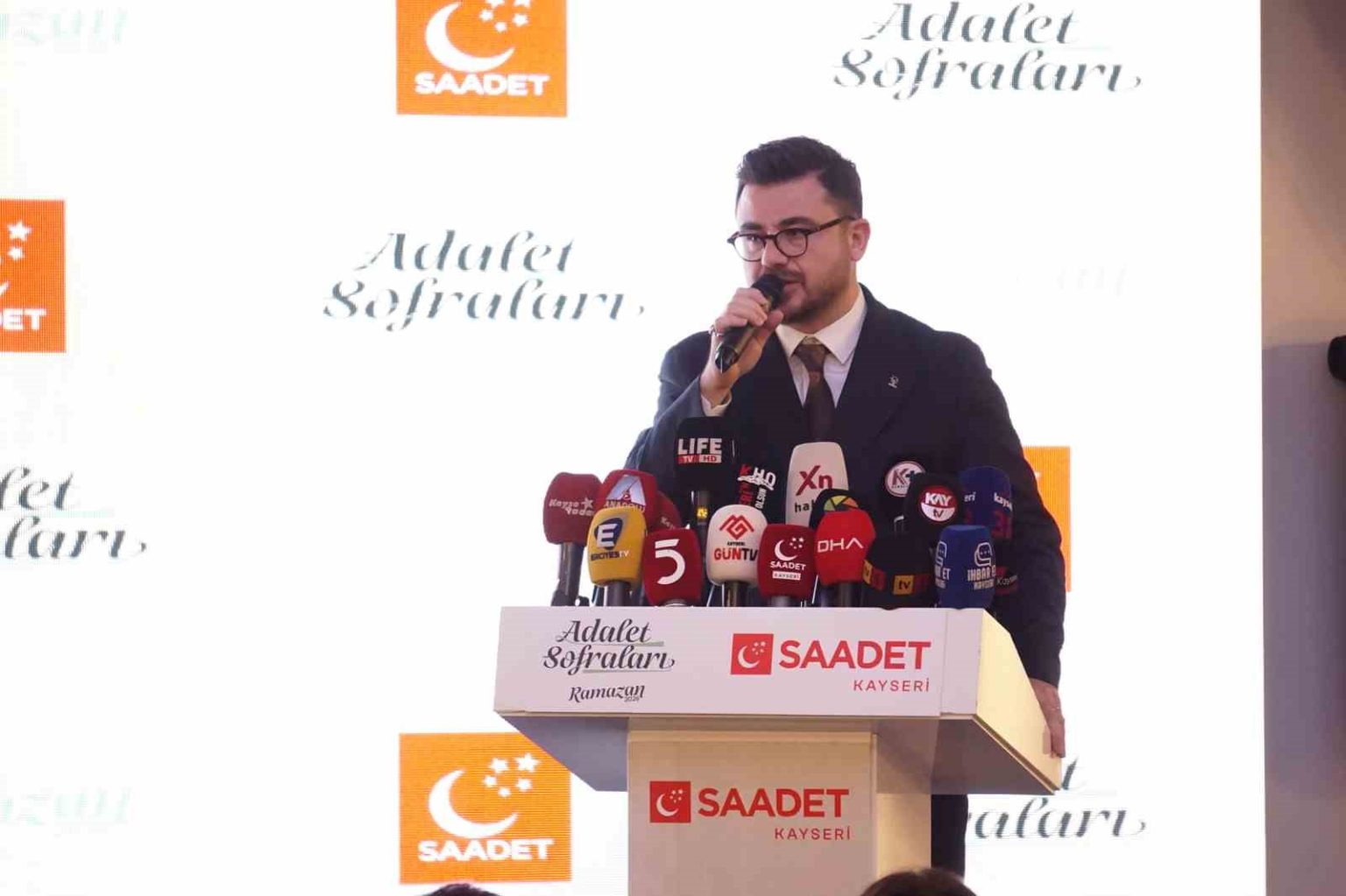 Saadet Partisi (SP) Kayseri İl Başkanlığı tarafından düzenlenen iftarda, tüm siyasi partiler bir araya geldi. ‘Adalet Sofrası’ olarak adlandırılan programda birlik ve beraberlik mesajı verildi.