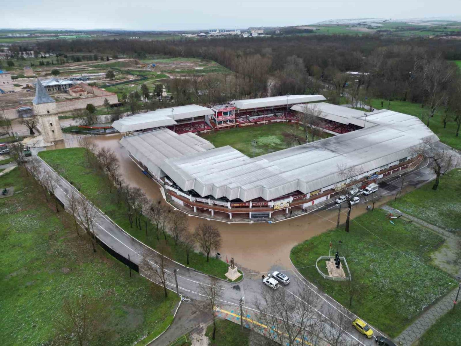 Taşkının en çok etkilediği nokta olan Sarayiçi’nde, tarihi Er Meydanı’nın girişleri, pehlivan heykellerinin bulunduğu meydan ve sosyal alanlar tamamen suyla kaplandı. Nehir üzerindeki tarihi köprülerin kemer seviyelerine kadar yükselen su, bölgedeki bankları ve ağaçları da yuttu.