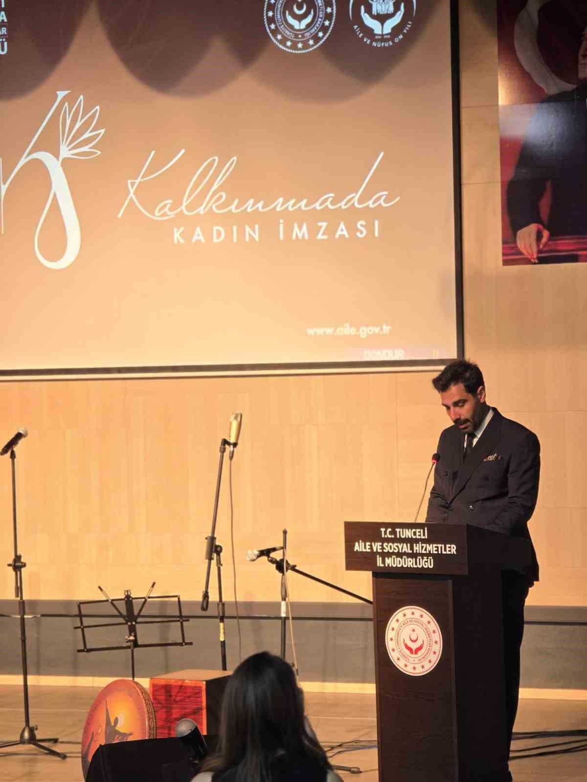 Programda konuşma yapan Tunceli Aile ve Sosyal Hizmetler İl Müdürü Hüseyin Okan, kadının toplumdaki vazgeçilmez rolüne dikkat çekerek, “Kadın; hayatın başlangıcıdır. Bir annenin duasında, bir öğretmenin sabrında ve bir emekçinin alın terinde kadın vardır. Bizler ‘Güçlü Kadın, Güçlü Aile, Güçlü Toplum’ anlayışıyla kadının her alanda eşit, güvenli ve güçlü bir şekilde var olması için çalışmalarımızı sürdürüyoruz” dedi.