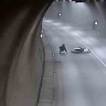 Amasya’da tünelde bordür taşlarına çarpıp takla atan ardından yoluna devam eden motosikletli anbean güvenlik kamerasına yansıdı.