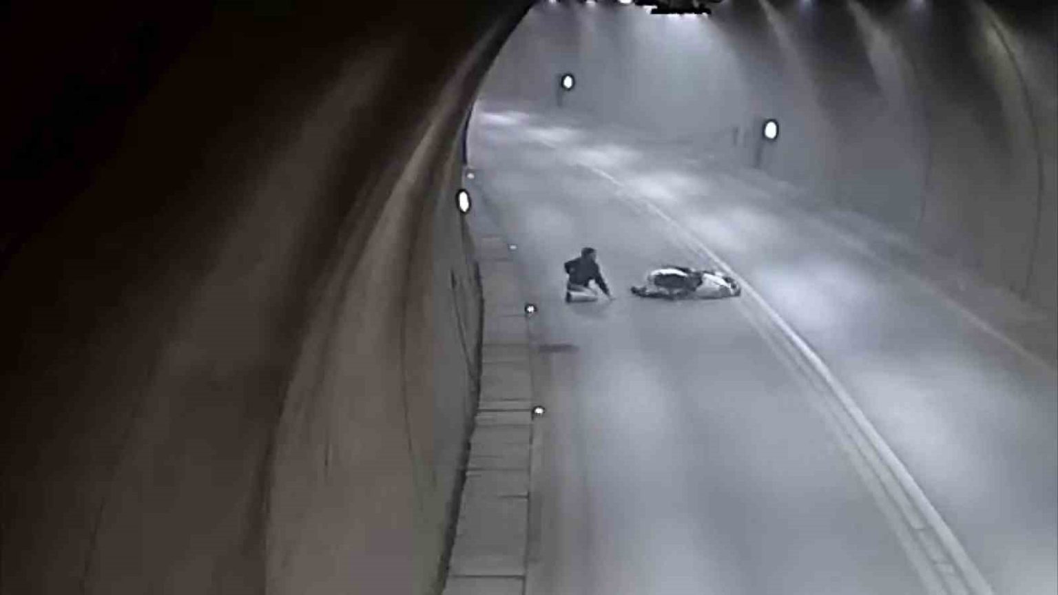 Tünelde motosikletle takla attı, bir dakika sonra yoluna devam etti