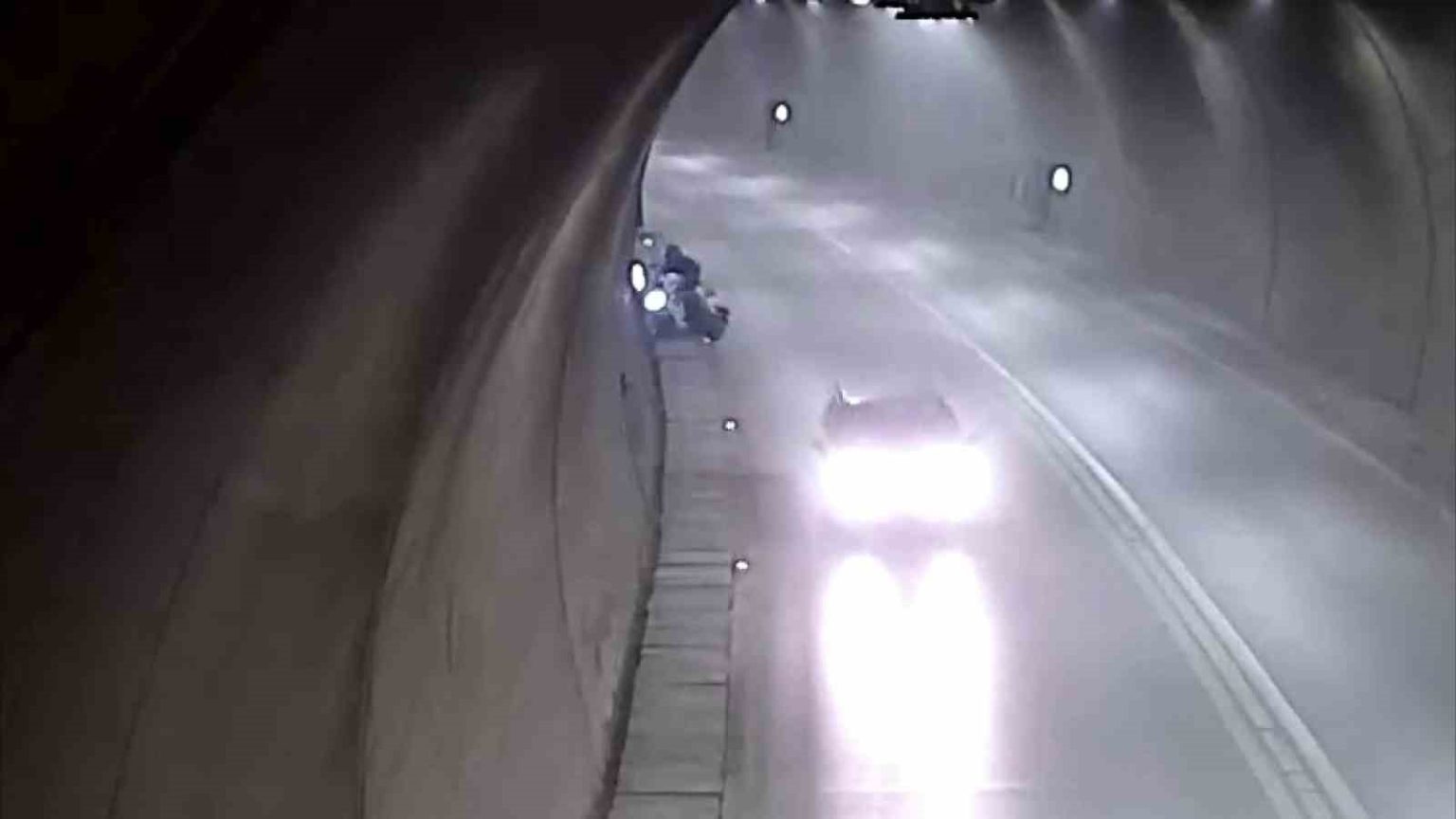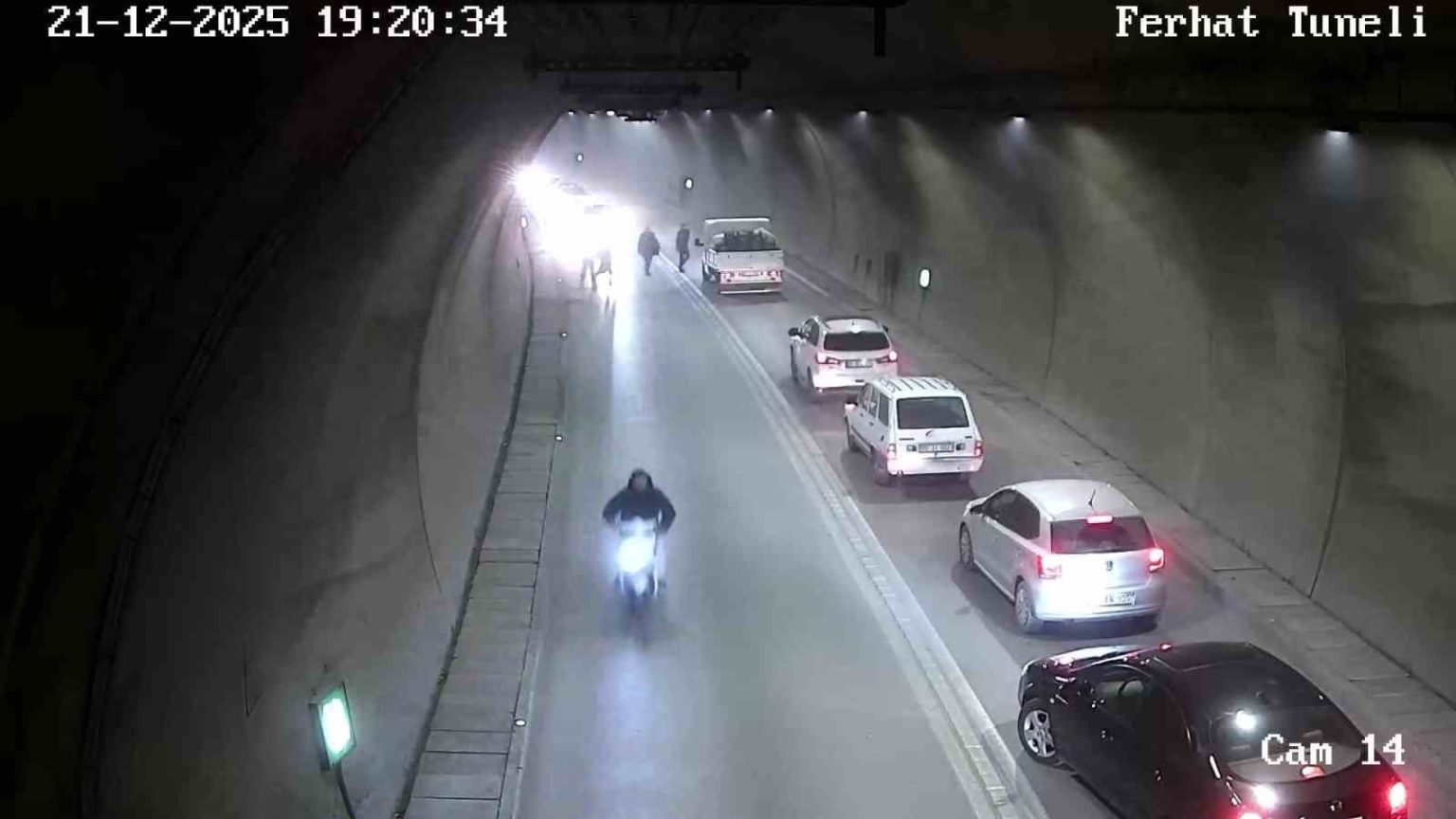 Ferhat Tüneli’nde sürücüsünün kontrolünü yitirdiği motosiklet, yolun sağındaki bordür taşları ile duvara çarpıp takla attı. Motosikletle yola savrulan sürücünün yardımına tünelden geçen diğer araç sürücüleri yetişti. Ayağa kalkan sürücü bir dakika sonra motosikletini yerden kaldırıp yoluna devam etti.