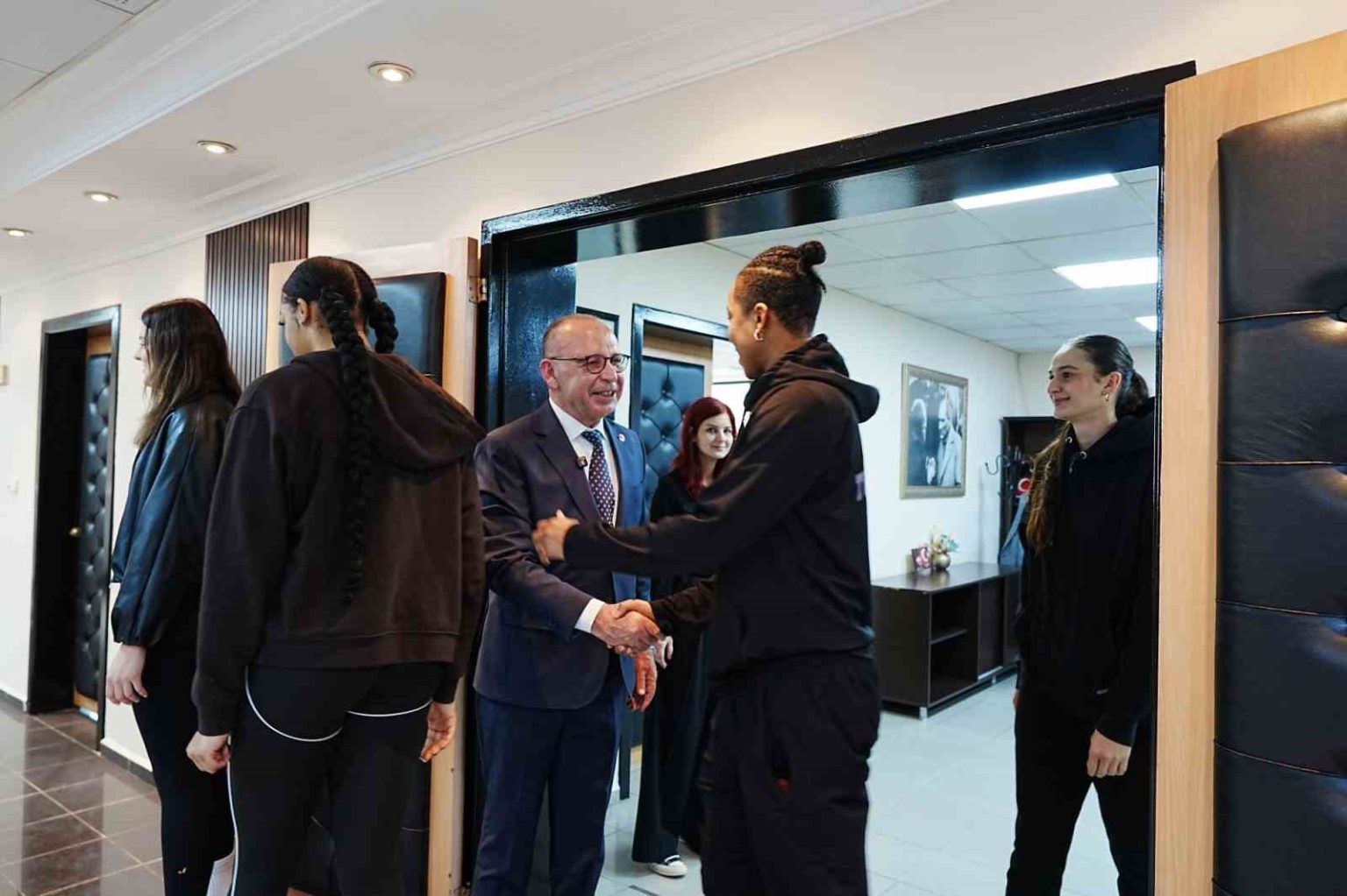 Turgutlu Belediyesinin bayramlaşma geleneği bu yıl da devam etti. Başkan Çetin Akın, Başkan Yardımcıları Hüseyin Maliz, Ali Rıza Kıran, Evren Erbaş Ser, Mithat Erden, Personel A.Ş. Genel Müdürü Orhan Eratıcı, Özel Kalem Müdürü Ali Nasuhoğlu, daire müdürleri ve belediye personeliyle bir araya gelerek Ramazan Bayramı’nı tebrik etti. Manisa’nın tek Kadın Basketbol Takımı olan Turgutlu Belediyesi Kadın Basketbol Takımının oyuncuları ve teknik ekibi, Kadın Voleybol Takımı Antrenörleri ile Turgutlu Belediyesinin Mustafa Kemal ve Albayrak Mahallelerinde hizmete açtığı, sunulan imkanlarla Türkiye’ye örnek olan Çocuk Kültür Sanat Merkezinde eğitim gören minikler Başkan Çetin Akın’ı ziyaret ederek bayramını kutladı.