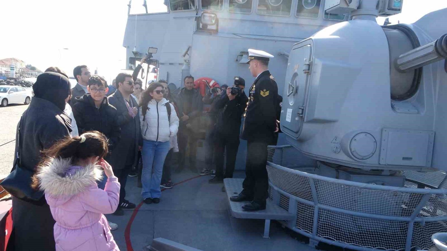 Çanakkale’de Deniz Kuvvetleri Komutanlığı bünyesinde görev yapan yerli gemiler ‘TCG Heybeliada’, ‘TCG Kınalıada’ ve ‘TCG Ayvalık’ mayın avlama gemisi, 18 Mart Çanakkale Deniz Zaferi’nin 111’nci yıl dönümü çerçevesinde halkın ziyaretine açıldı. Vatandaşlar, GESTAŞ Feribot iskelesine demirleyen savaş gemilerini görmek için uzun kuyruklar oluşturdu. Vatandaşlar, ziyaret sırasında gemiler hakkında merak ettikleri soruları sorma fırsatı da buldu. Askeri personel sorulan soruları içtenlikle yanıtlarken, seyrüsefer cihazları hakkında da bilgiler verdi.
