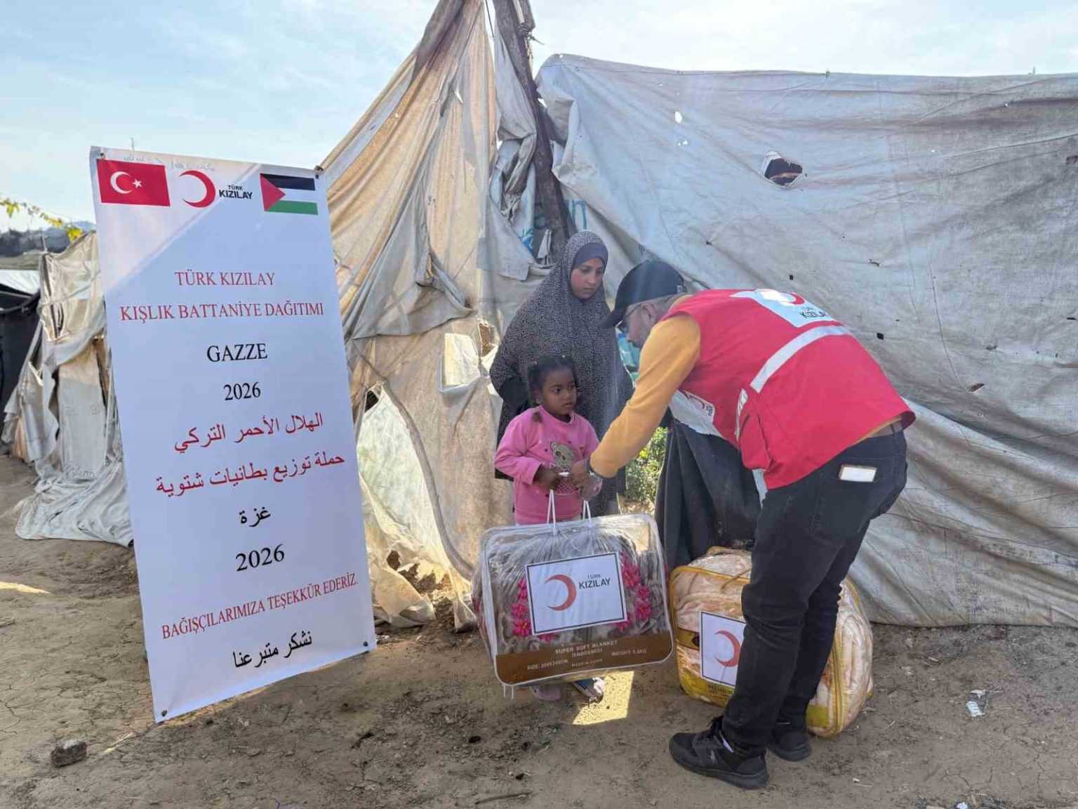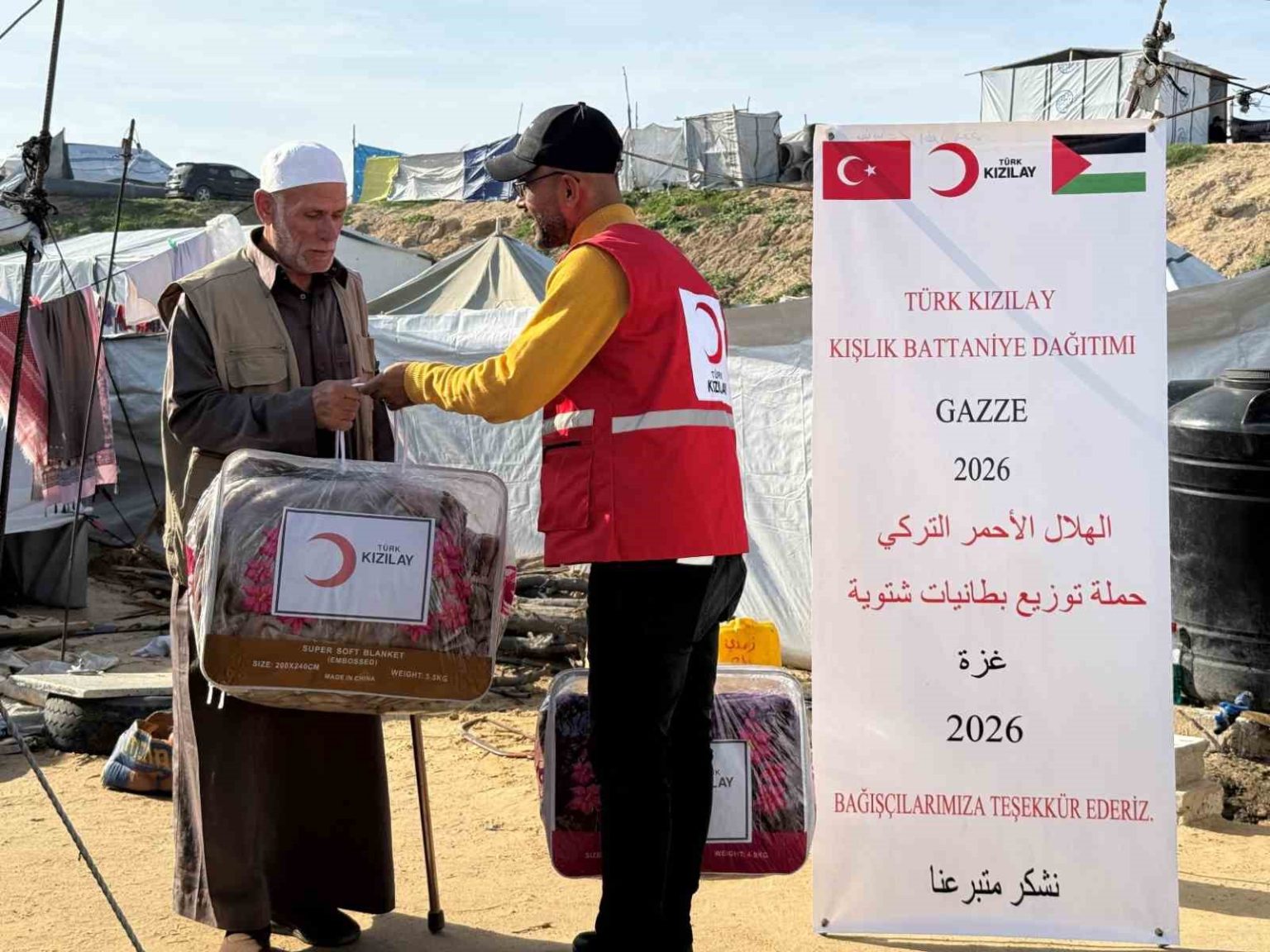 Türk Kızılay, Gazze’de soğuk hava şartlarından korunmaları amacıyla 2 bin aileye kışlık battaniye desteği sağladı.