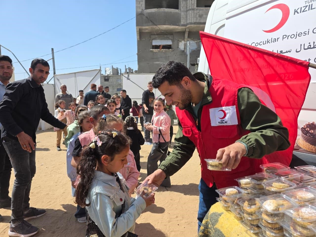 Türk Kızılay tarafından Gazze’de günlük bin çocuğa şekerleme, tatlı ve atıştırmalık ulaştırılıyor.