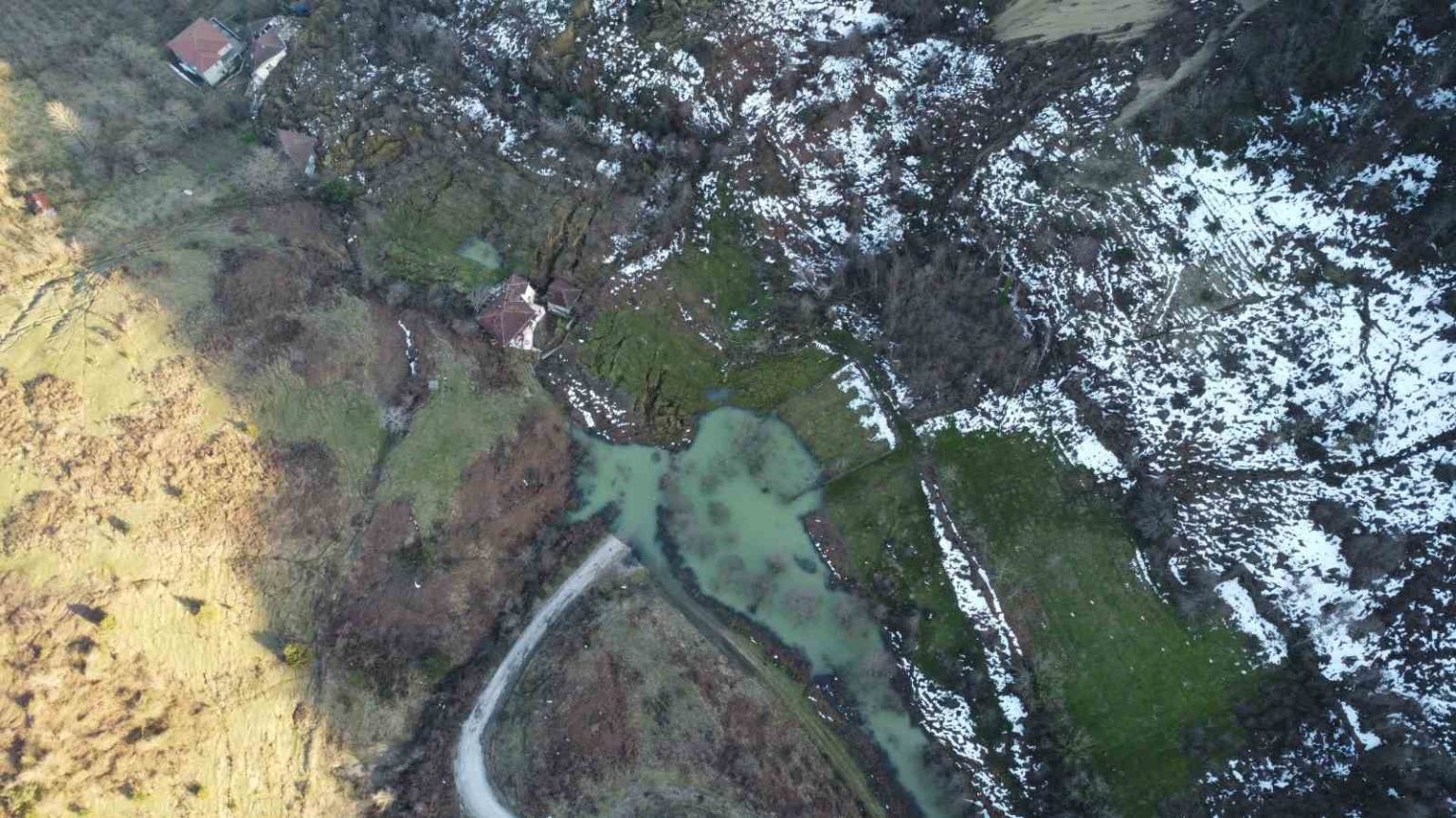 Türkeli ilçesine bağlı Düz Köyü Merkez Mahallesi’nde 5 Mart 2025’te meydana gelen heyelanın ardından oluşan gölet, aradan geçen 9 aya rağmen tehlike oluşturmaya devam ediyor. Heyelan sonrası Merkez ile Cayla mahallelerini birbirine bağlayan yol sular altında kalmış, ulaşım tamamen kesilmişti.