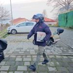 Demir, göğüs cebinde taşıdığı bayrakla birlikte motosikletine binerek gazete dağıtımına kaldığı yerden devam etti.
