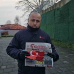 Zonguldak’ta 25 yıldır Türkiye Gazetesi’nin dağıtıcılığını yapan Bilal Demir (41), seyir halindeyken yol kenarındaki çalılıkların arasında gördüğü Türk Bayrağı’na kayıtsız kalmadı. Akan trafikte duramayan Demir, kavşaktan geri dönüp aldığı yıpranmış bayrağı, “Bayrağımıza çok ihtiyacımız olduğu bir zamandayız” diyerek katlayıp koyduğu göğüs cebinde taşıyor.
