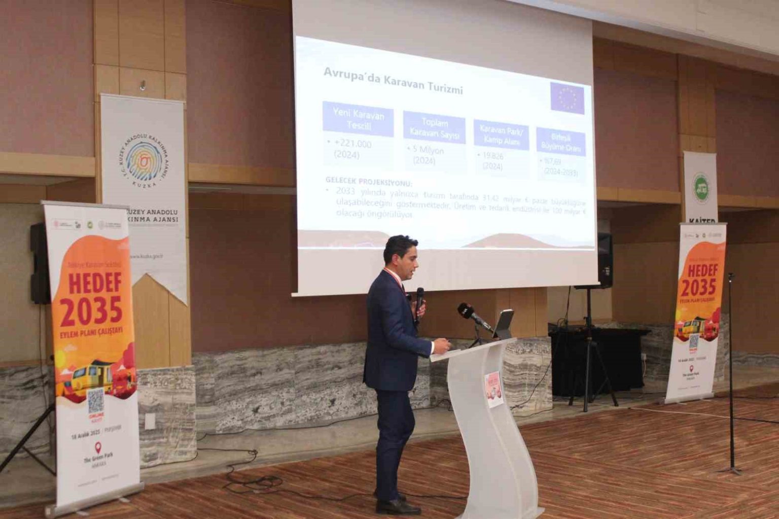 Karavan sektörünün 2035 hedeflerine yönelik yol haritasını belirlemek amacıyla Ankara’da bir otelde “Türkiye Karavan Sektörü Hedef 2035 Eylem Planı Çalıştayı” düzenlendi. Kuzey Anadolu Kalkınma Ajansı (KUZKA) ve Karavan İmalat ve Tedarikçiler Derneği (KAİTED) işbirliğinde gerçekleştirilen çalıştaya, KUZKA Genel Sekreteri Serkan Genç, KAİTED Yönetim Kurulu Başkanı Ahmet Fazlıoğlu, bakanlıklar başta olmak üzere çok sayıda kamu kurumu, yerel yönetim, sektör temsilcileri ile sivil toplum kuruluşları ve akademisyenler katıldı.