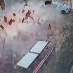 Karaman’da etkili olan fırtına nedeniyle 10 katlı bir apartmanın çatısı yerinden koparak yere düşerken, o sırada bahçede bulunan apartman yöneticisi saniyelerle çatının altında kalmaktan kurtuldu. O anlar güvenlik kamerasına saniye saniye yansıdı.