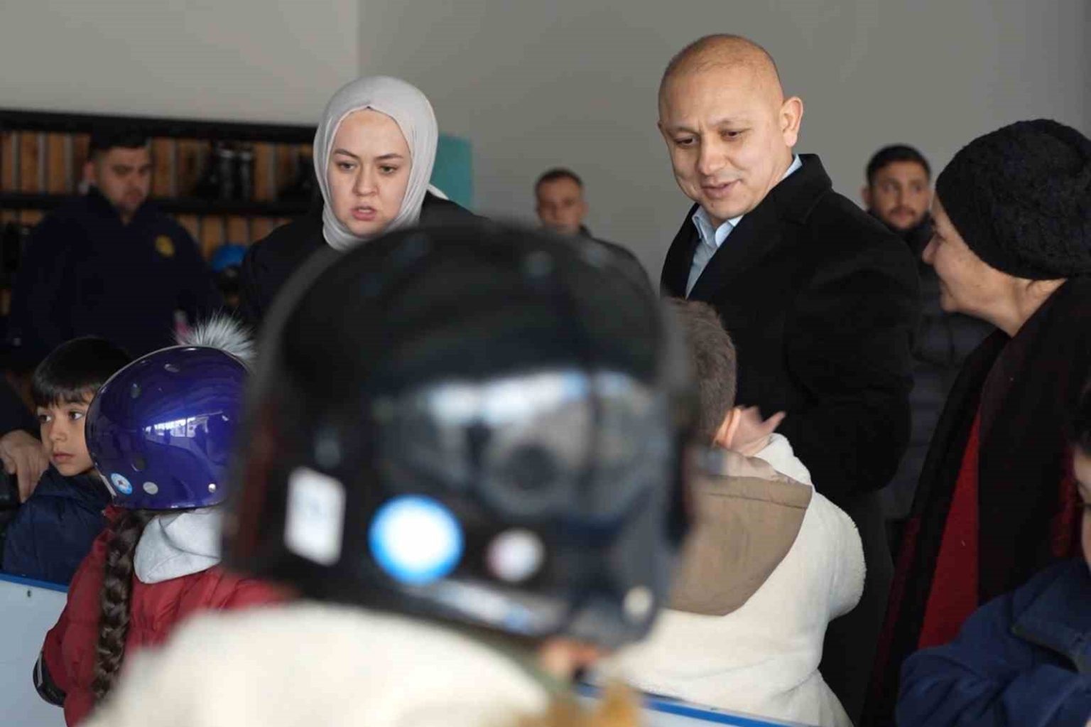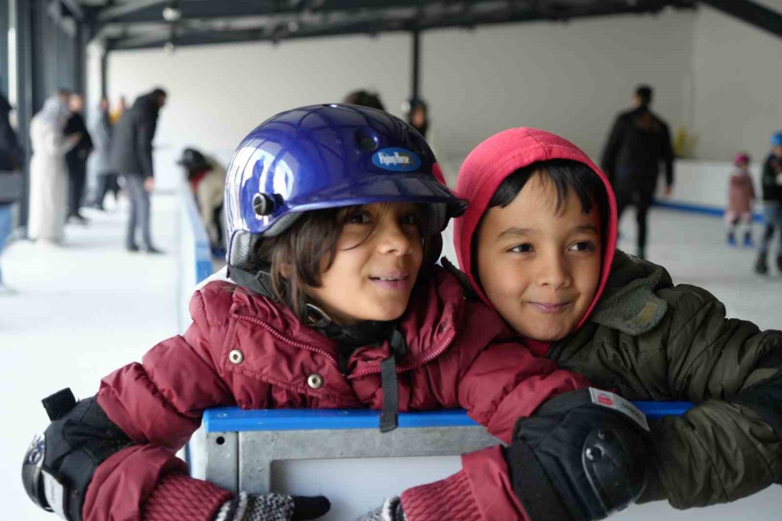 Ücretsiz buz pisti çocukların yüzünü güldürdü