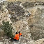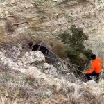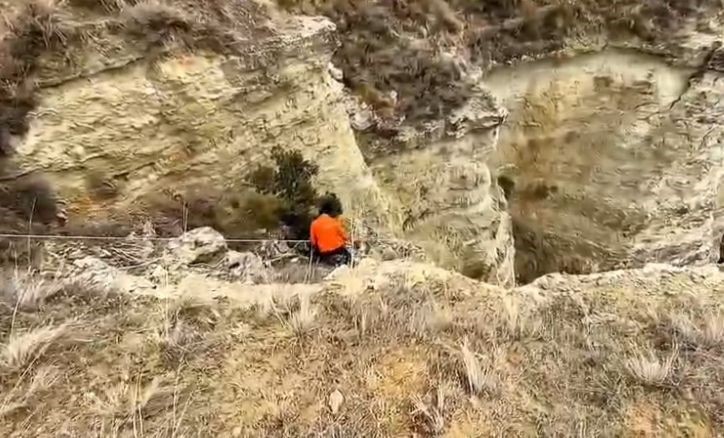 Burdur’da avcılar uçuruma düşen av köpeklerini kendi imkanları ile metrelerce derinlikteki uçuruma halatla inerek sağ salim çıkardı.