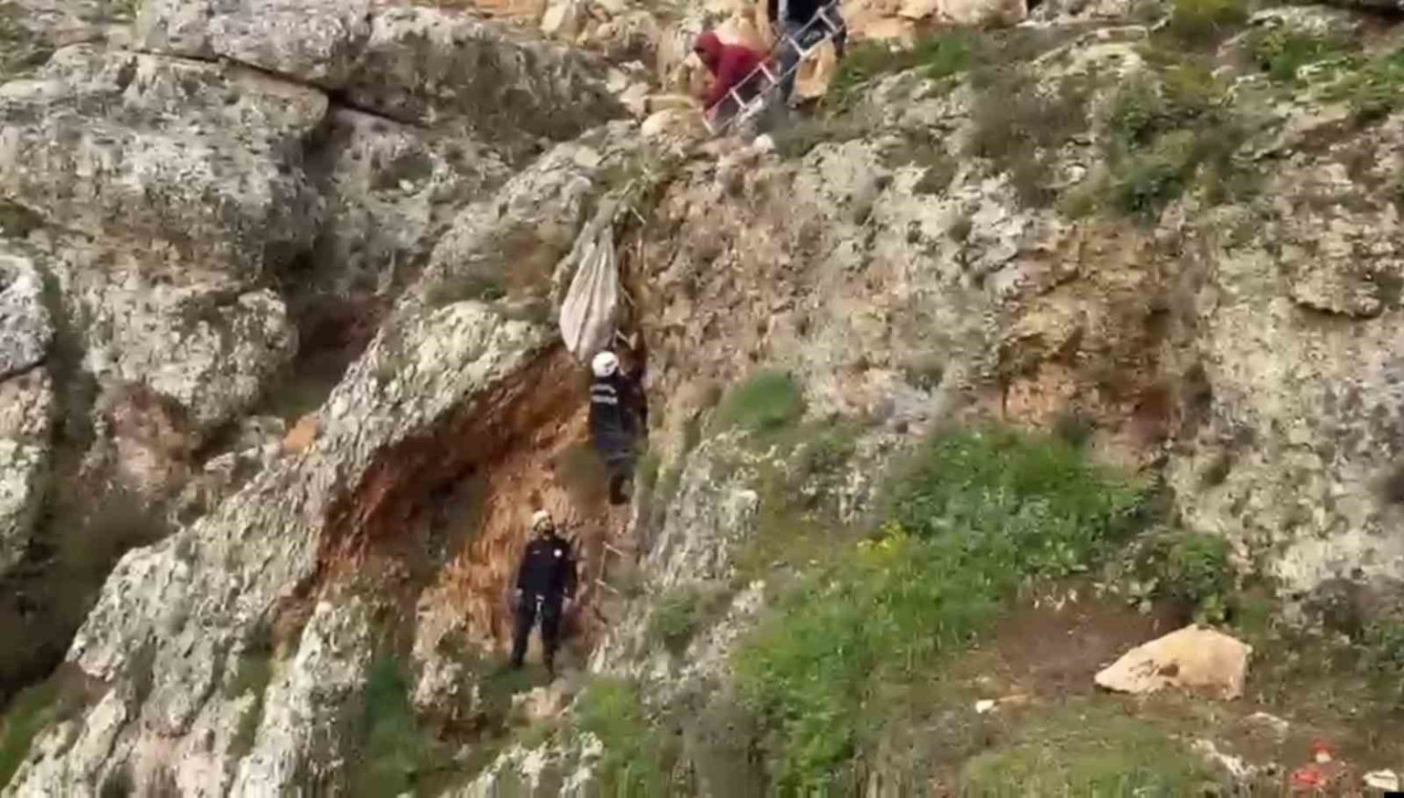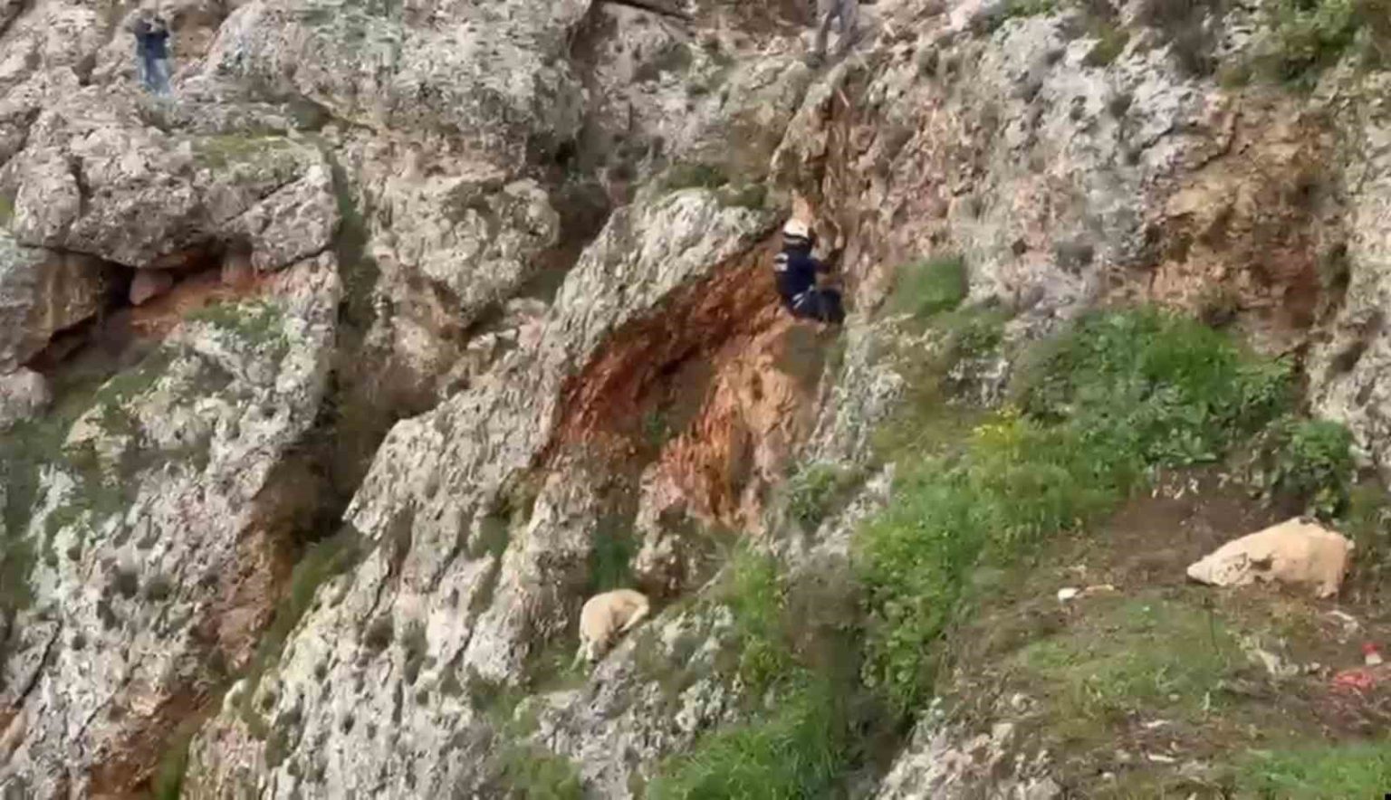 Uçurumdan düşen köpek 4 saatlik çalışmayla kurtarıldı