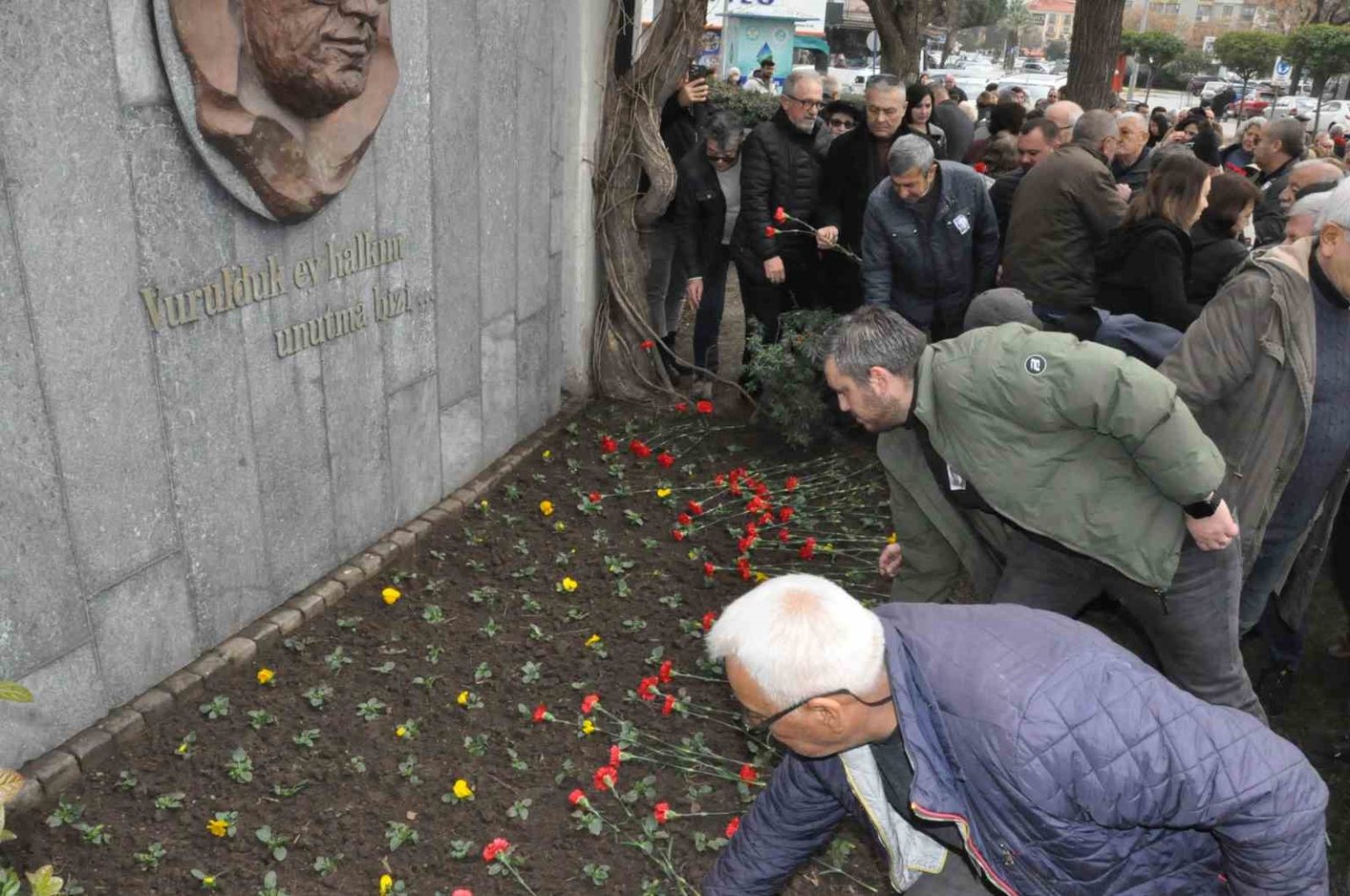 Saygı duruşunda bulunulması ve İstiklal Marşı’nın okunmasıyla başlayan törene katılanlar, Mumcu’nun anıtına karanfil bıraktı.