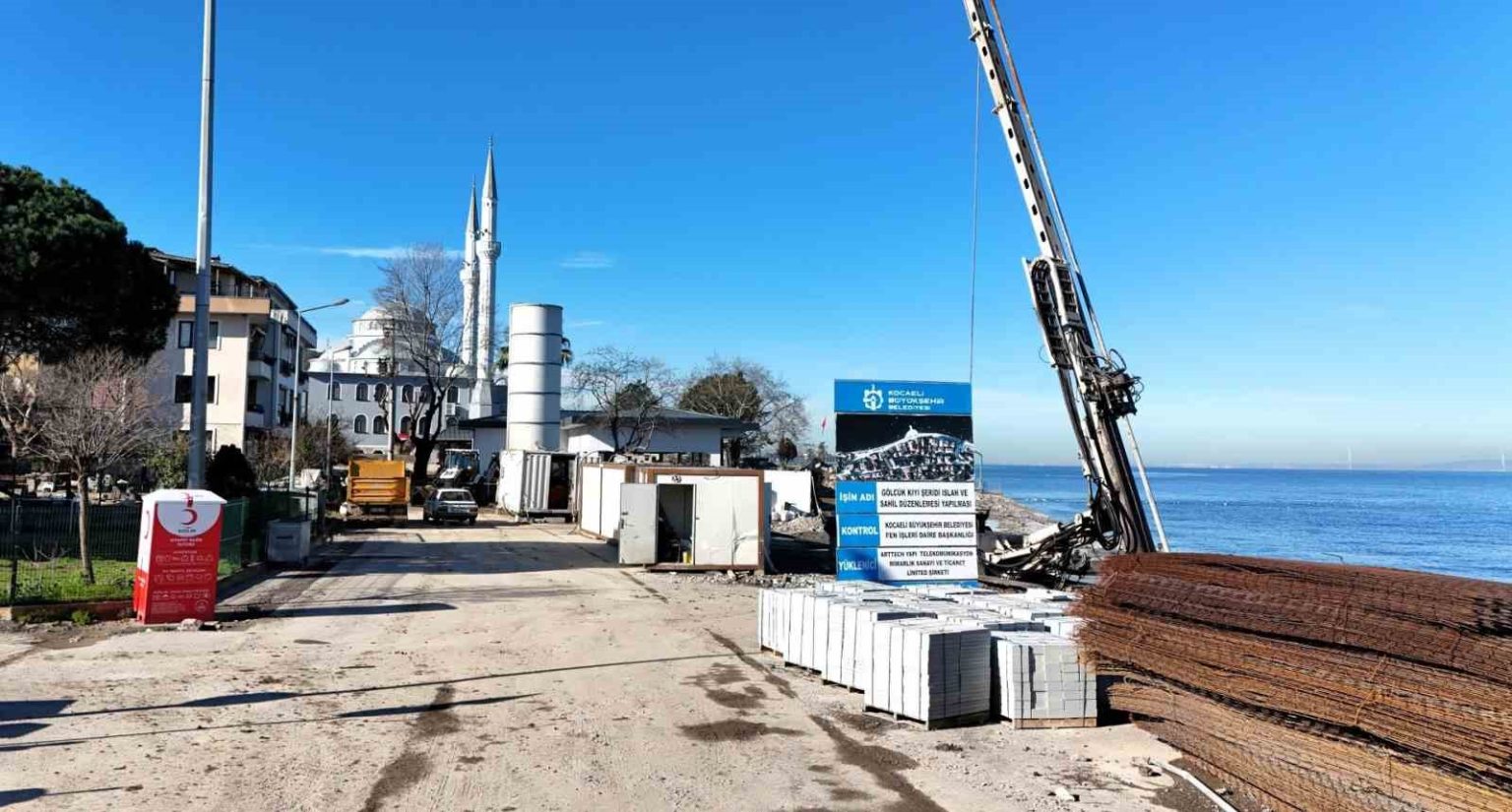 Gölcük Ulaşlı Sahili’nde deniz taşkınlarına karşı 550 metre uzunluğunda dalga kırıcı set inşasında önemli ilerleme sağlandı. Proje kapsamında zemin güçlendirme çalışmaları sürerken 635 jet grout kolon imalatı tamamlandı.