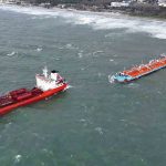 İstanbul’da Küçükçekmece Demir Sahasında, Azerbaycan ve Türk bandıralı iki tanker gemi, temas etmesi üzerine kurtarma ekipleri sevk edildi. Sabitlenmeye çalışılan iki gemi havadan görüntülendi.