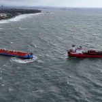 Öte yandan, sabitlenmeye çalışılan iki gemi havadan görüntülendi.