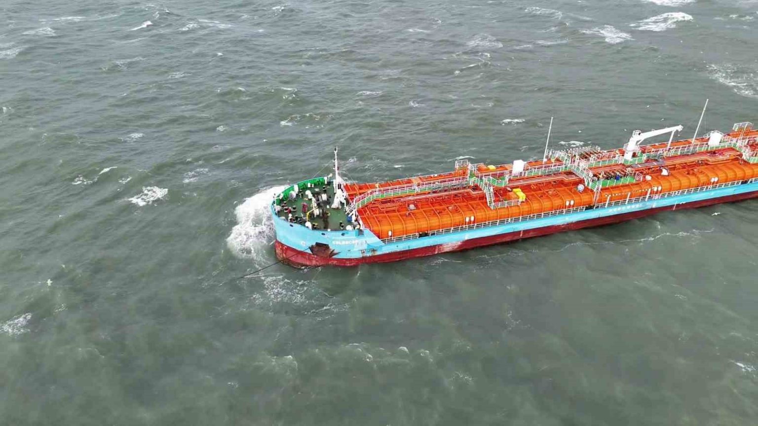 Öte yandan, sabitlenmeye çalışılan iki gemi havadan görüntülendi.
