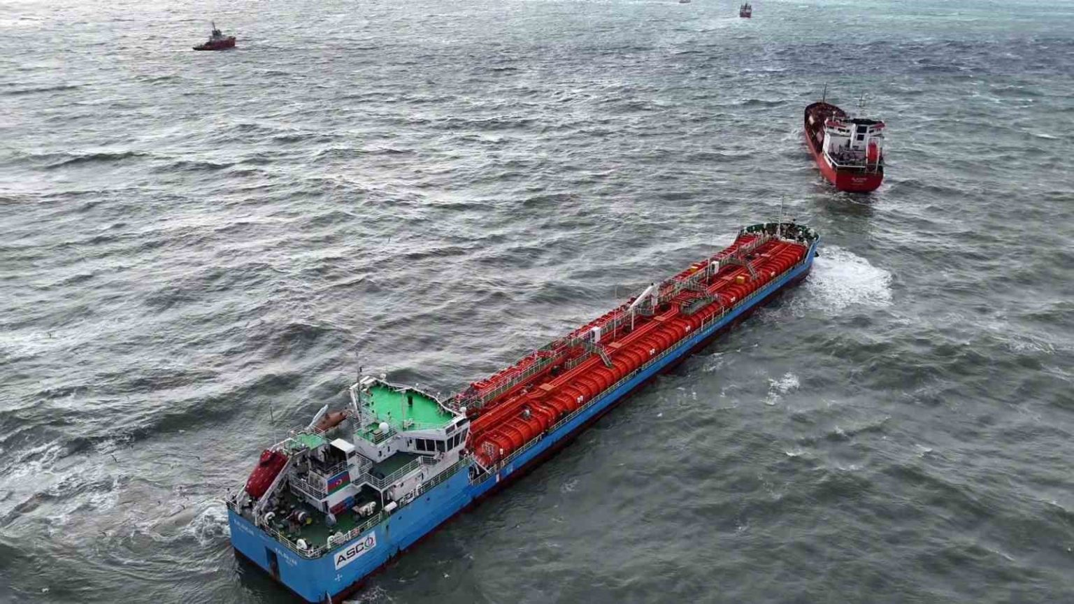 İstanbul’da Küçükçekmece Demir Sahasında, Azerbaycan ve Türk bandıralı iki tanker gemi, temas etmesi üzerine kurtarma ekipleri sevk edildi. Sabitlenmeye çalışılan iki gemi havadan görüntülendi.