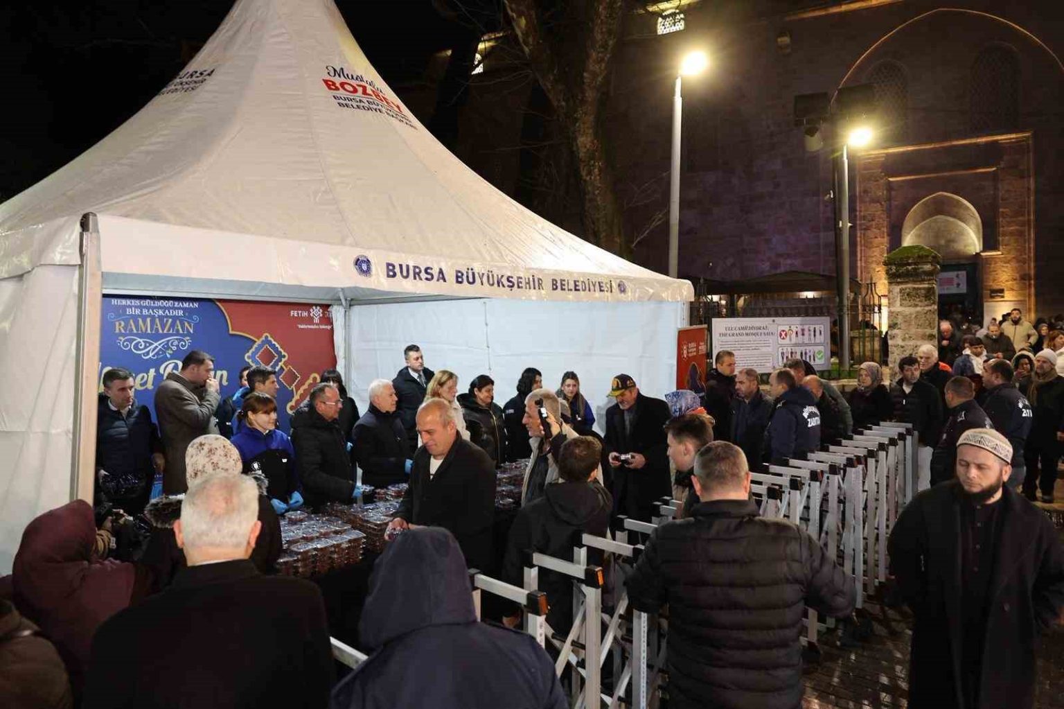 Bursa Büyükşehir Belediye Başkanı Mustafa Bozbey, eşi Seden Bozbey ile birlikte Ramazan ayının başlangıcında Ulu Cami’de kılınan ilk teravih namazının ardından, Ramazan’ın hayırlı ve bereketli olmasını dileyerek vatandaşlara tatlı ikramında bulundu.